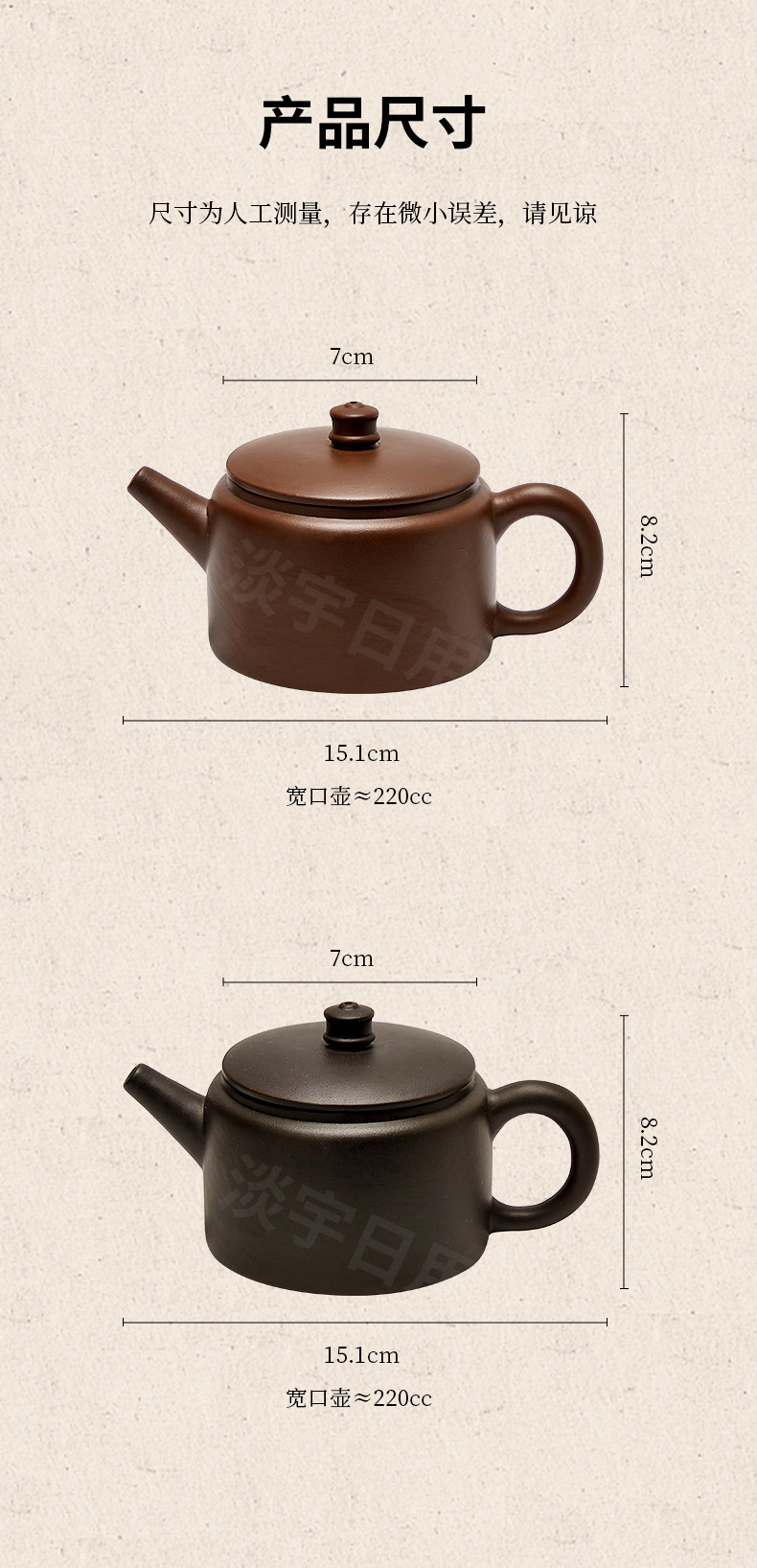 规格 小汉瓦壶;150ml,中汉瓦壶;160ml,古壶;190ml,汉瓦壶;紫色220ml,汉瓦壶;黑色220ml,神灯壶 ;130ml,雨润壶;130ml,灯笼壶;130ml,直口壶;130ml,仿古壶;130ml,手工【西施壶】130ml,手工【水平壶】130ml,手工【小直口壶】140ml,手工【伴月壶】150ml,手工【阔口壶】160ml,手工【谷鼎壶】170ml,手工【大直口壶】180ml,手工【鼓形壶】230ml,手工【井栏壶】260ml