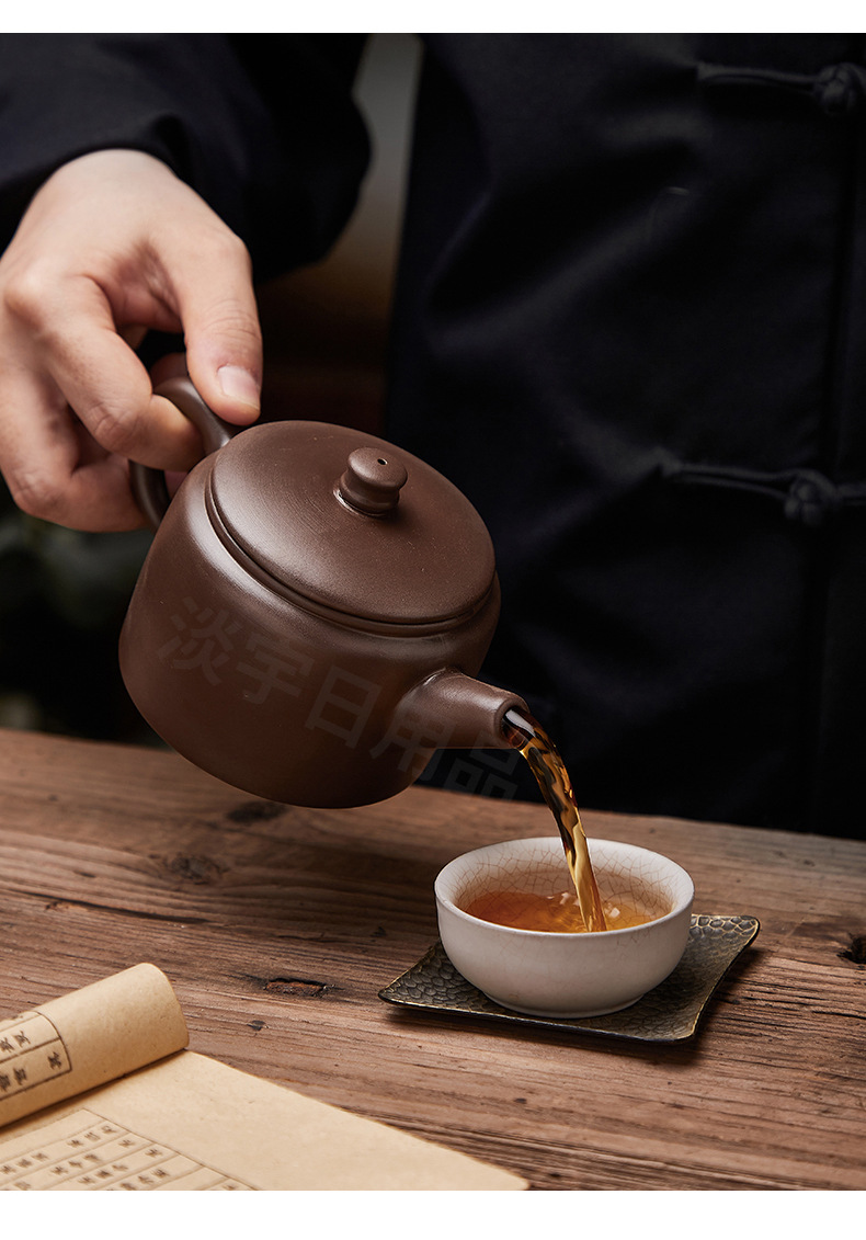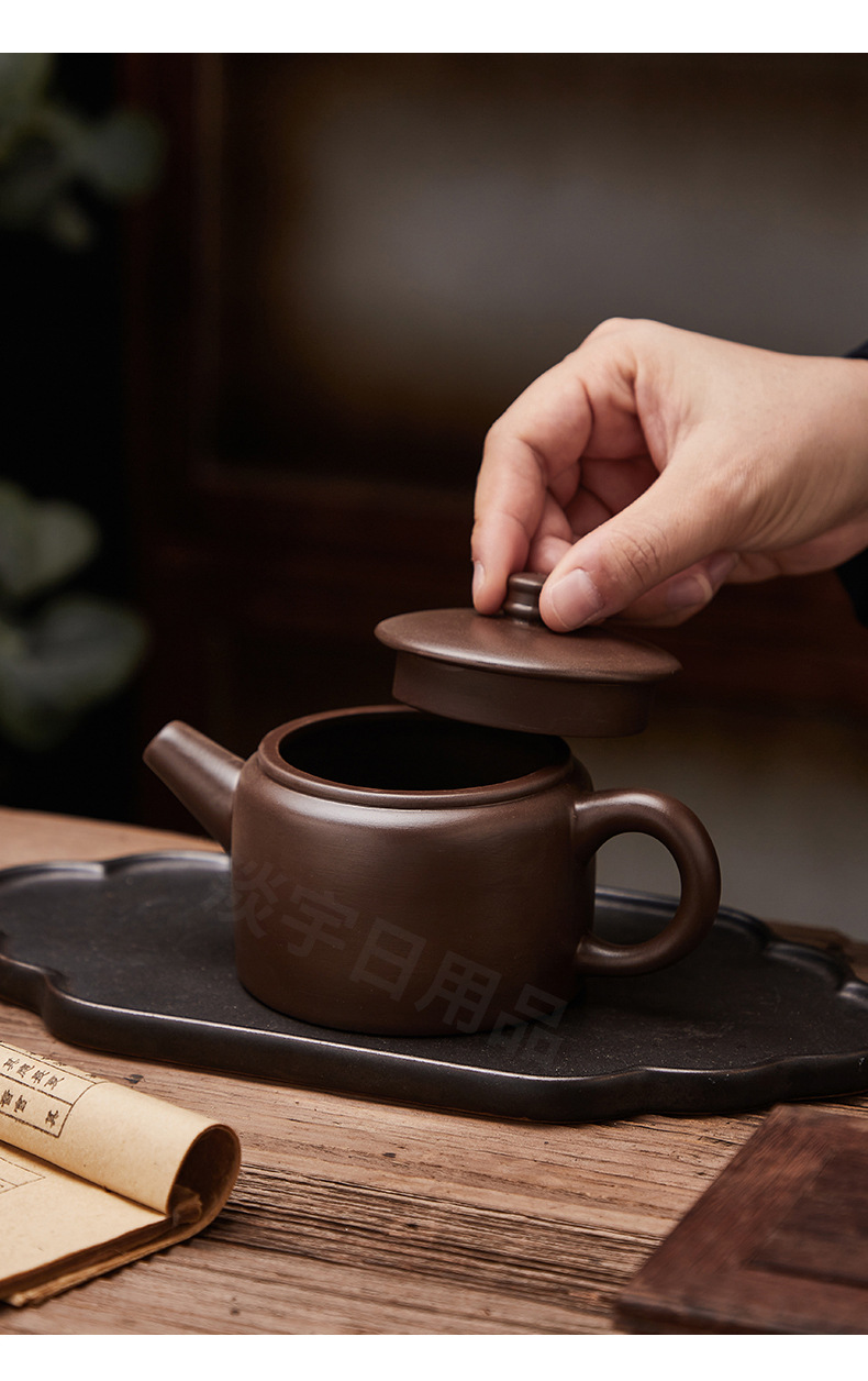 紫砂壶手工大容量宽口茶壶老紫泥功夫茶具;大口汉瓦敞口泡茶壶