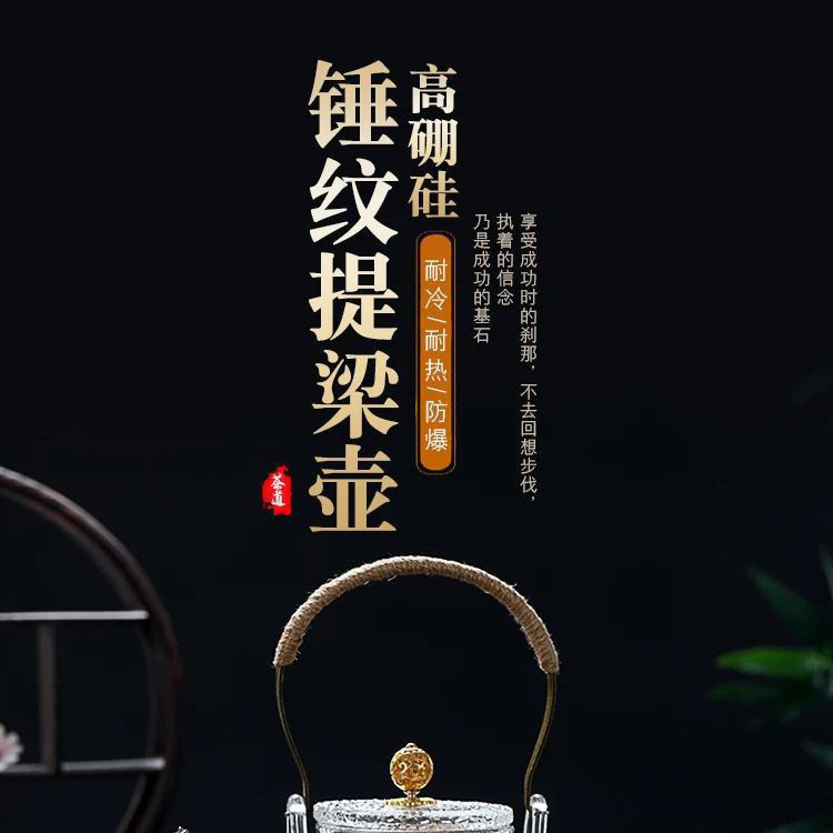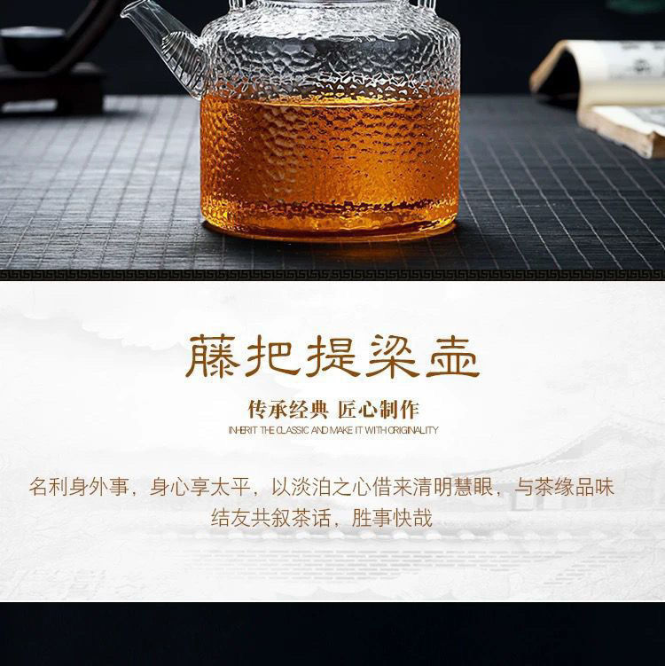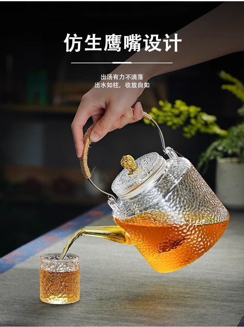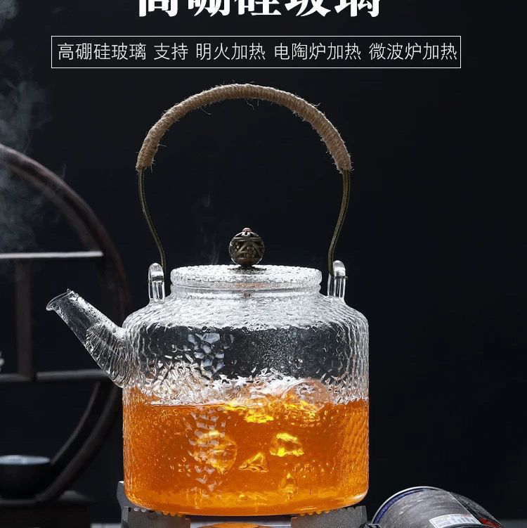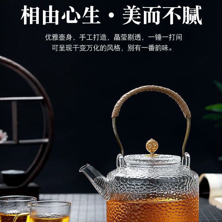 锤纹提梁壶耐热透明大容量煮茶壶家用高硼硅玻璃泡茶壶养生煮茶壶