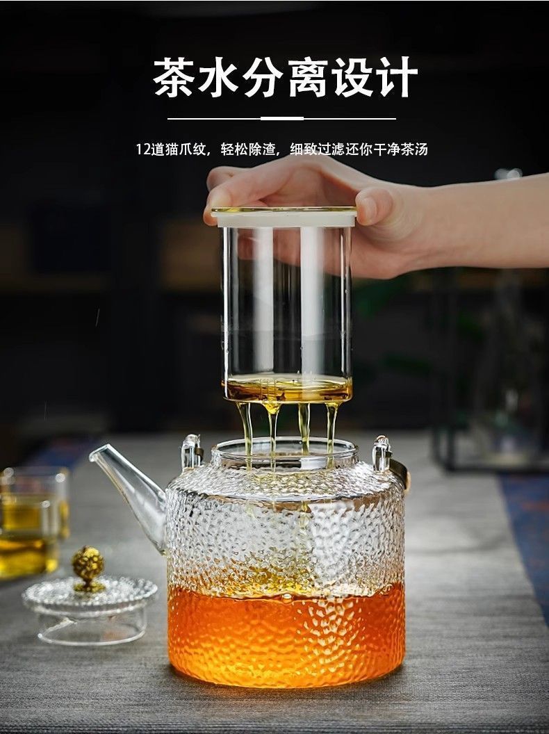 玻璃茶具过滤内胆煮茶壶玻璃泡茶壶八角壶日式锤纹提梁壶养生壶