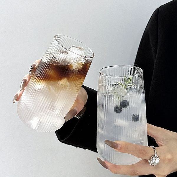 大容量竖纹玻璃杯高硼硅玻璃果汁单层杯简约透明玻璃早餐牛奶杯
