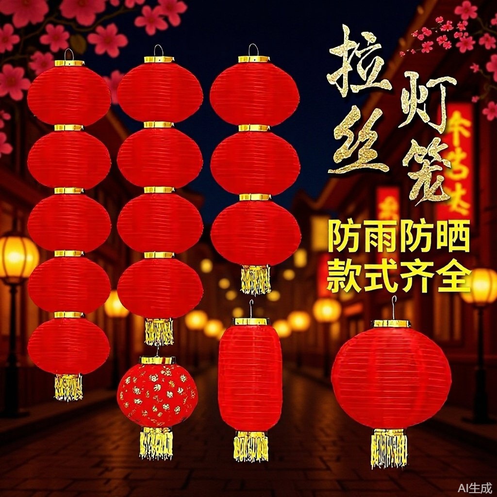 连串防水拉丝灯笼燈籠折叠舞蹈新年结婚装饰广告圆红灯笼装饰挂件