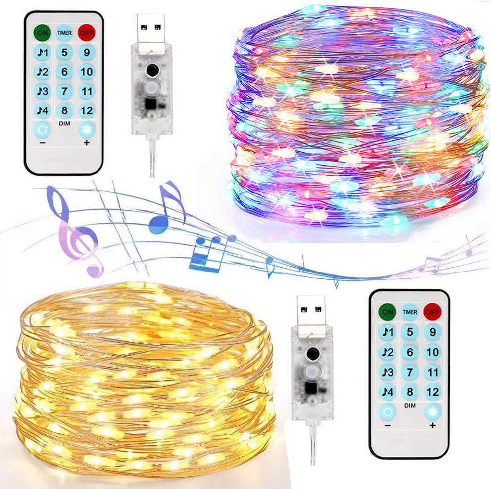 音楽音制御電池ボックスとusb 8モードled装飾ランプストリング