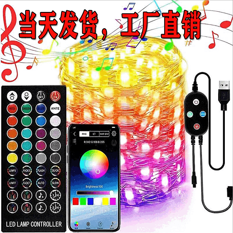 Bluetoothライトストリング携帯電話app幻彩銅線ライトストリングusbスマート音楽背景クリスマス装飾ライト