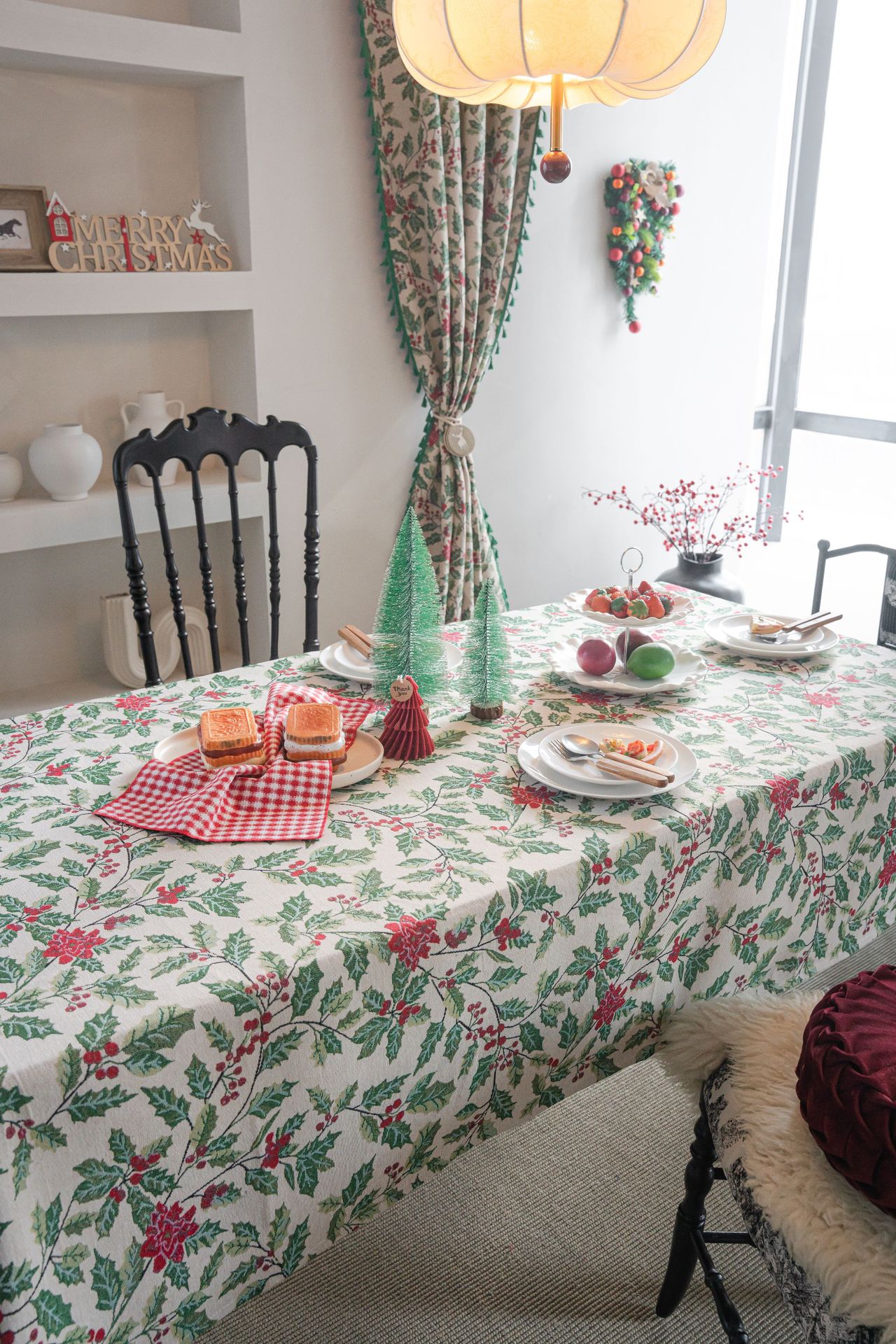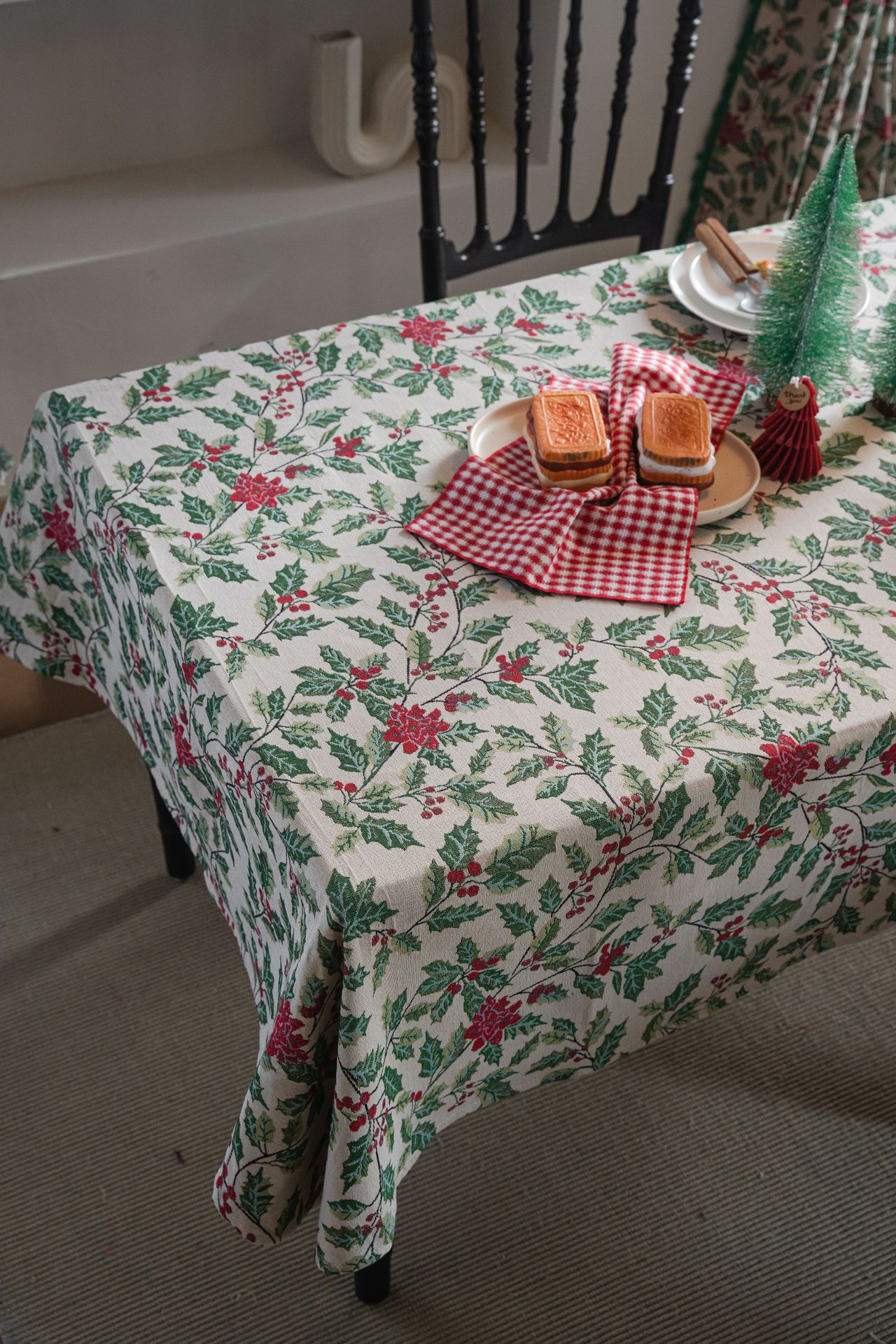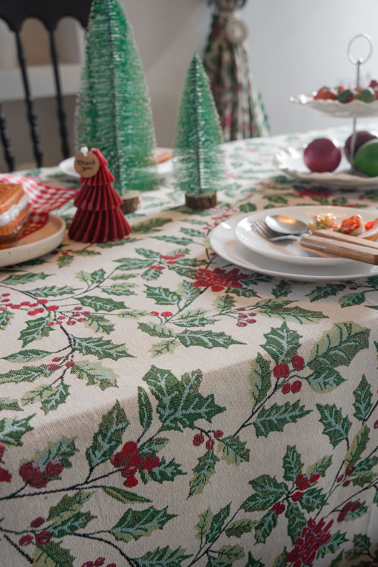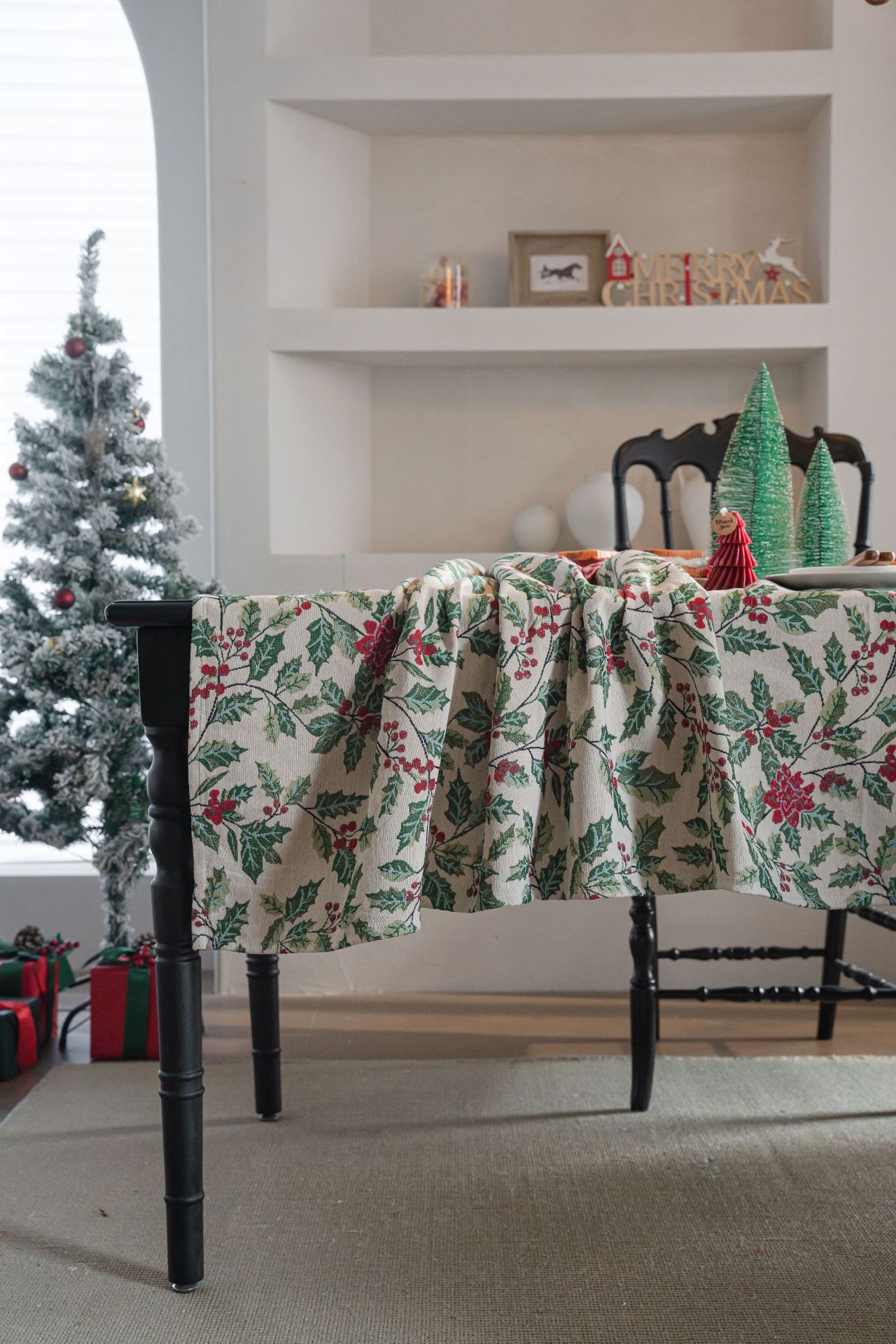 伊缦琪韵提花桌布圣诞撞色冬青餐桌布节日百搭长方形工厂直供
