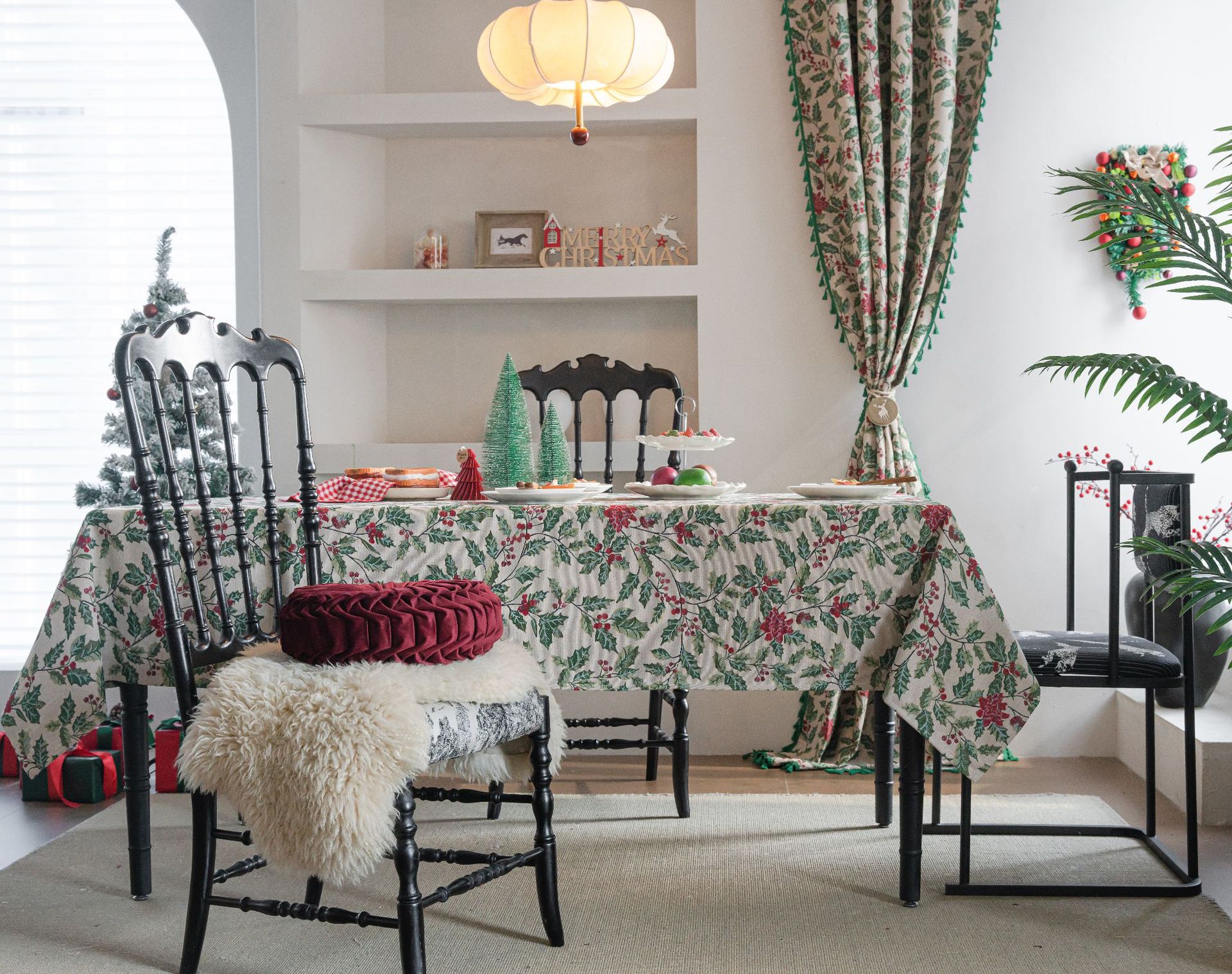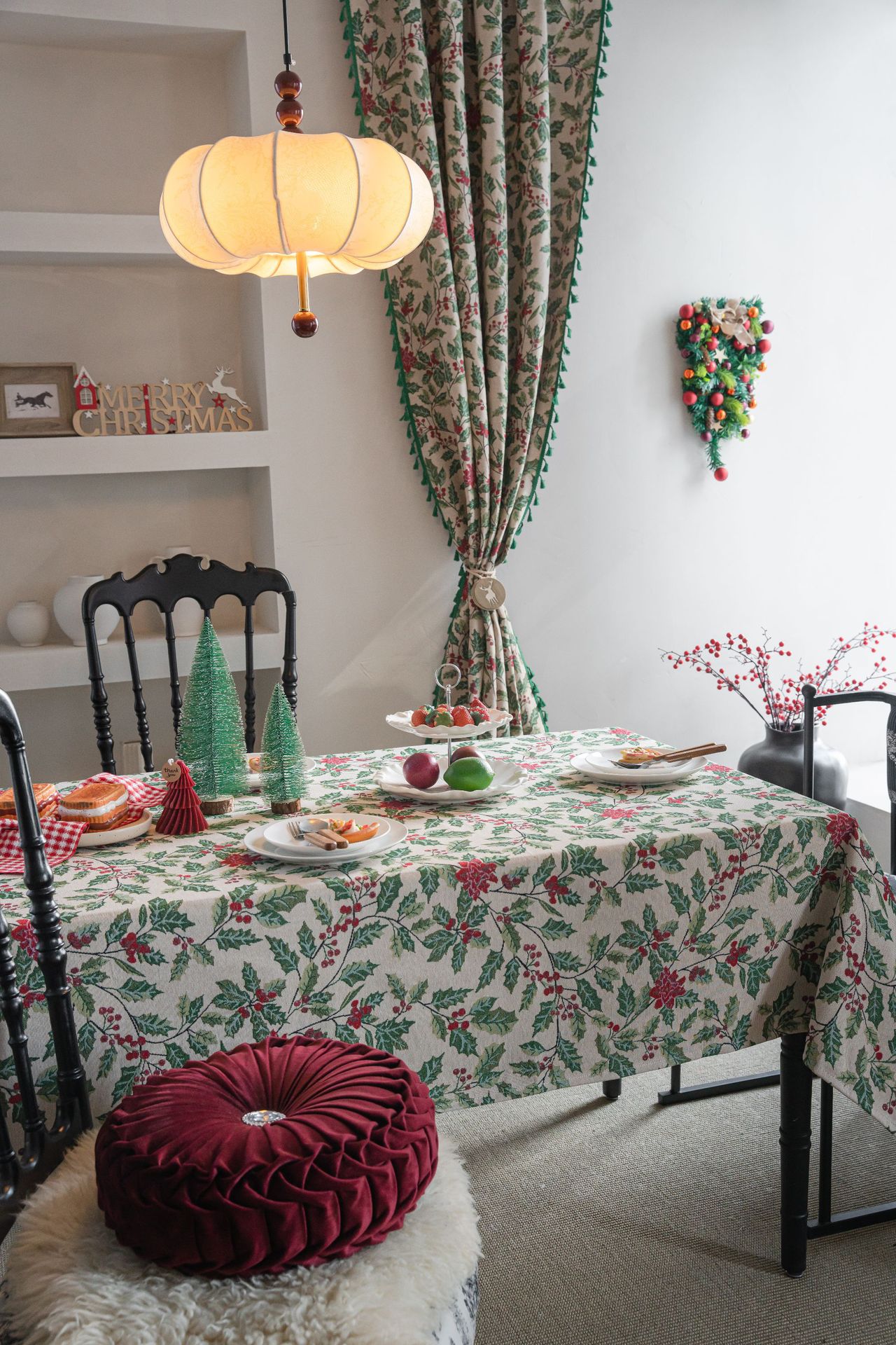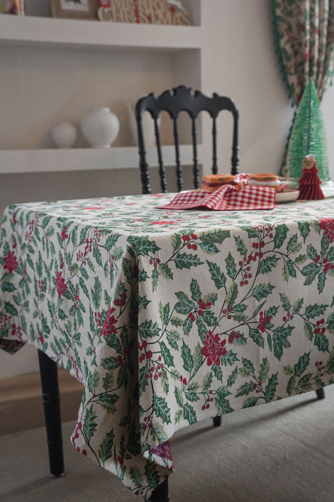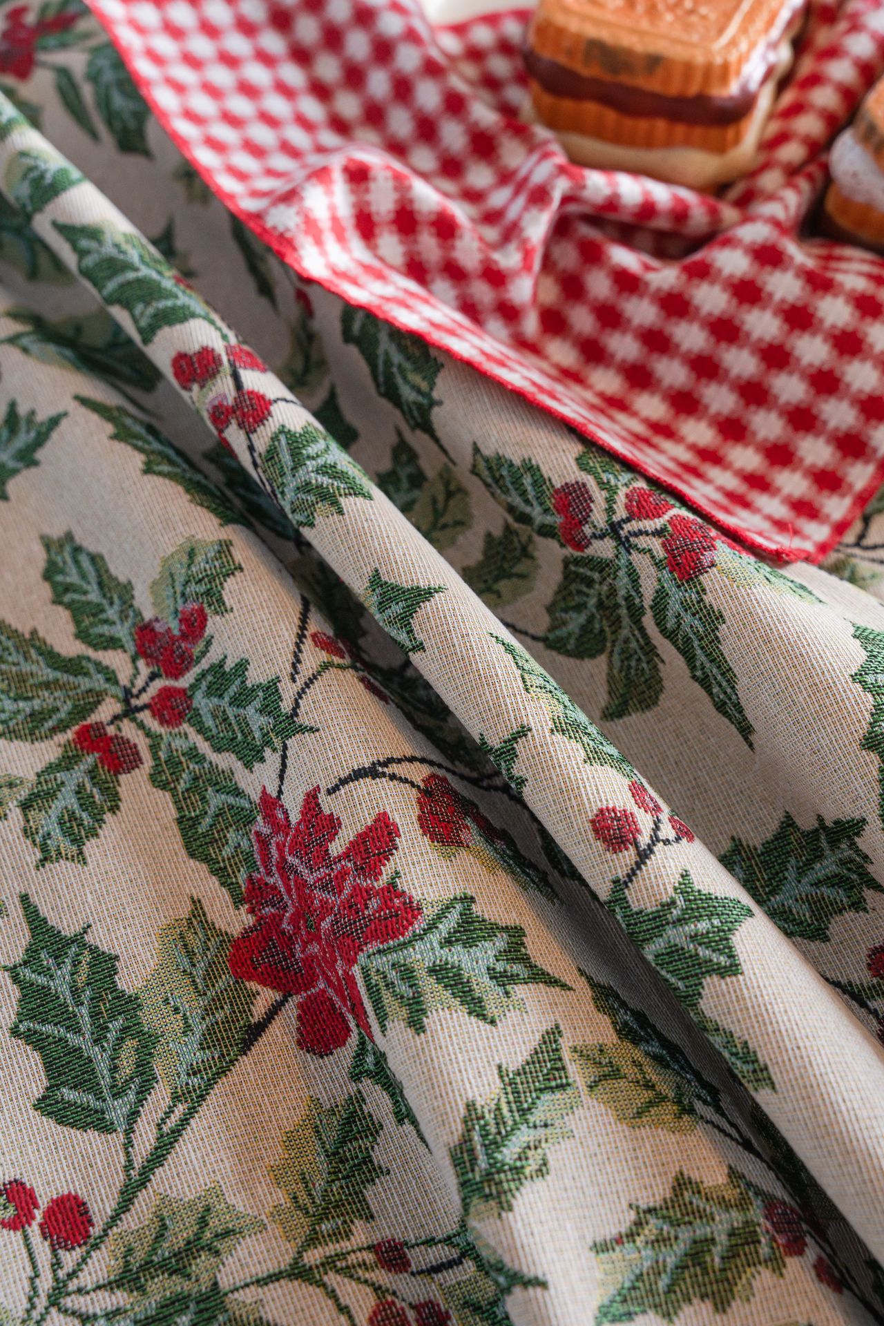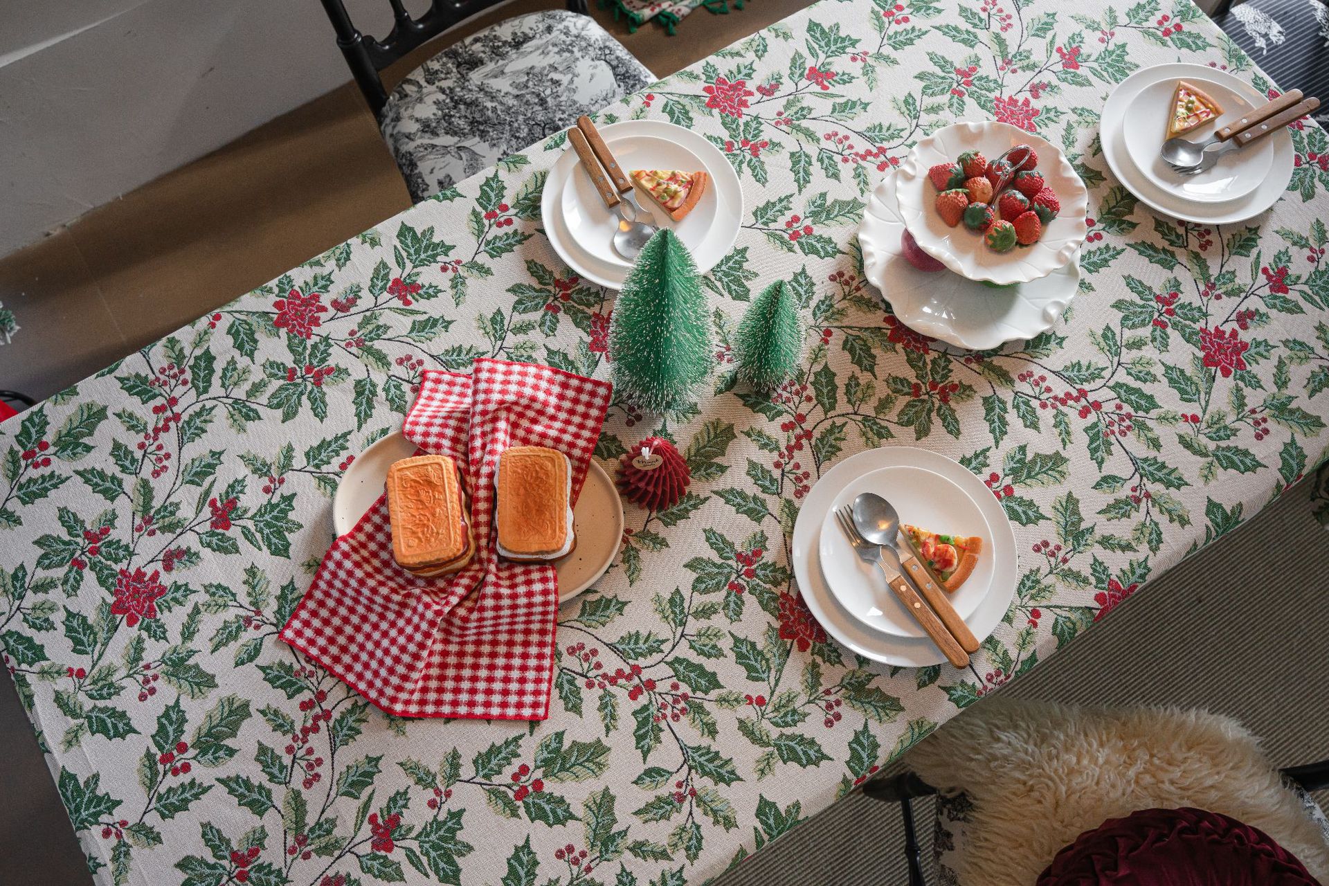 伊缦琪韵提花桌布圣诞撞色冬青餐桌布节日百搭长方形工厂直供
