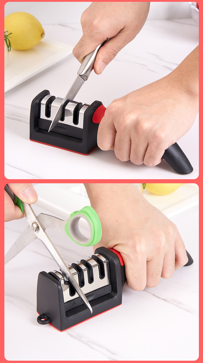 研削器家庭用多機能包丁ハサミ研削刀四段式石ネット赤快速研削刀架開刃神器
