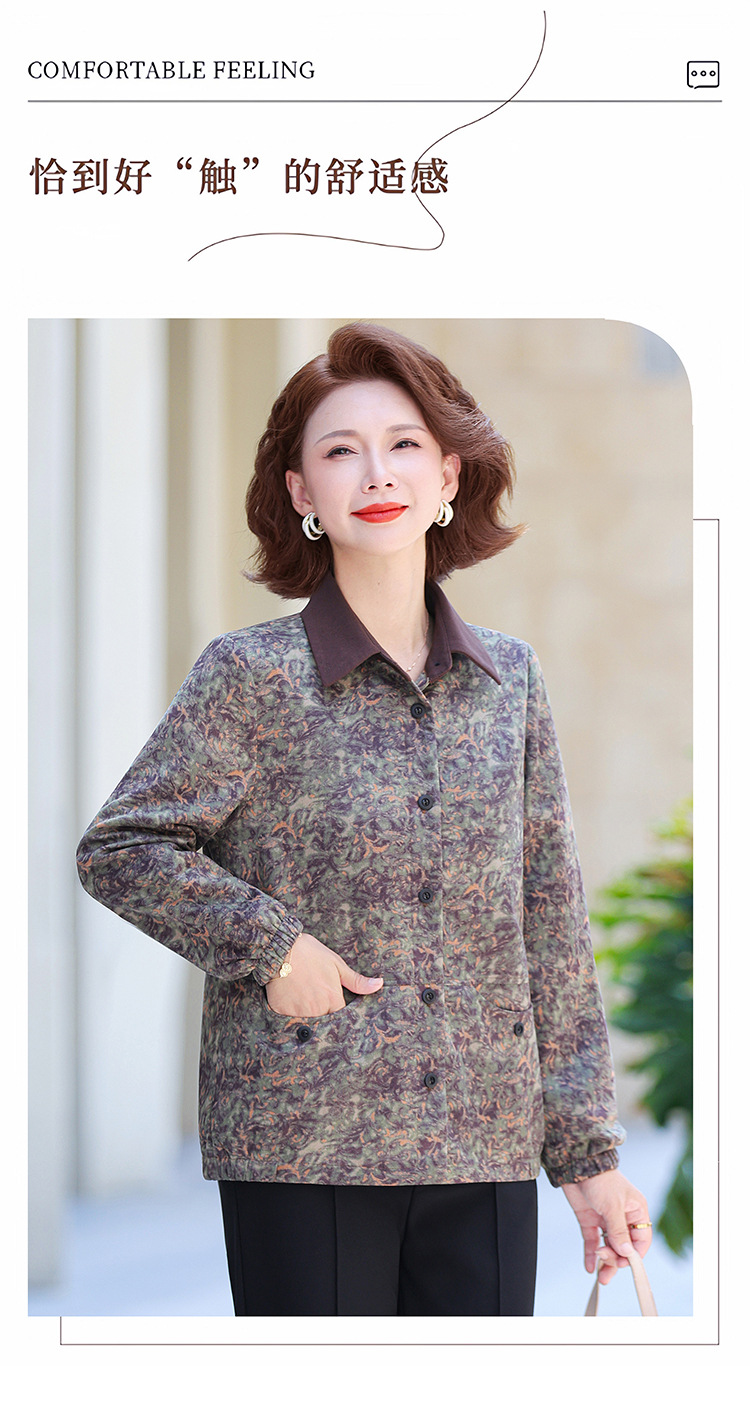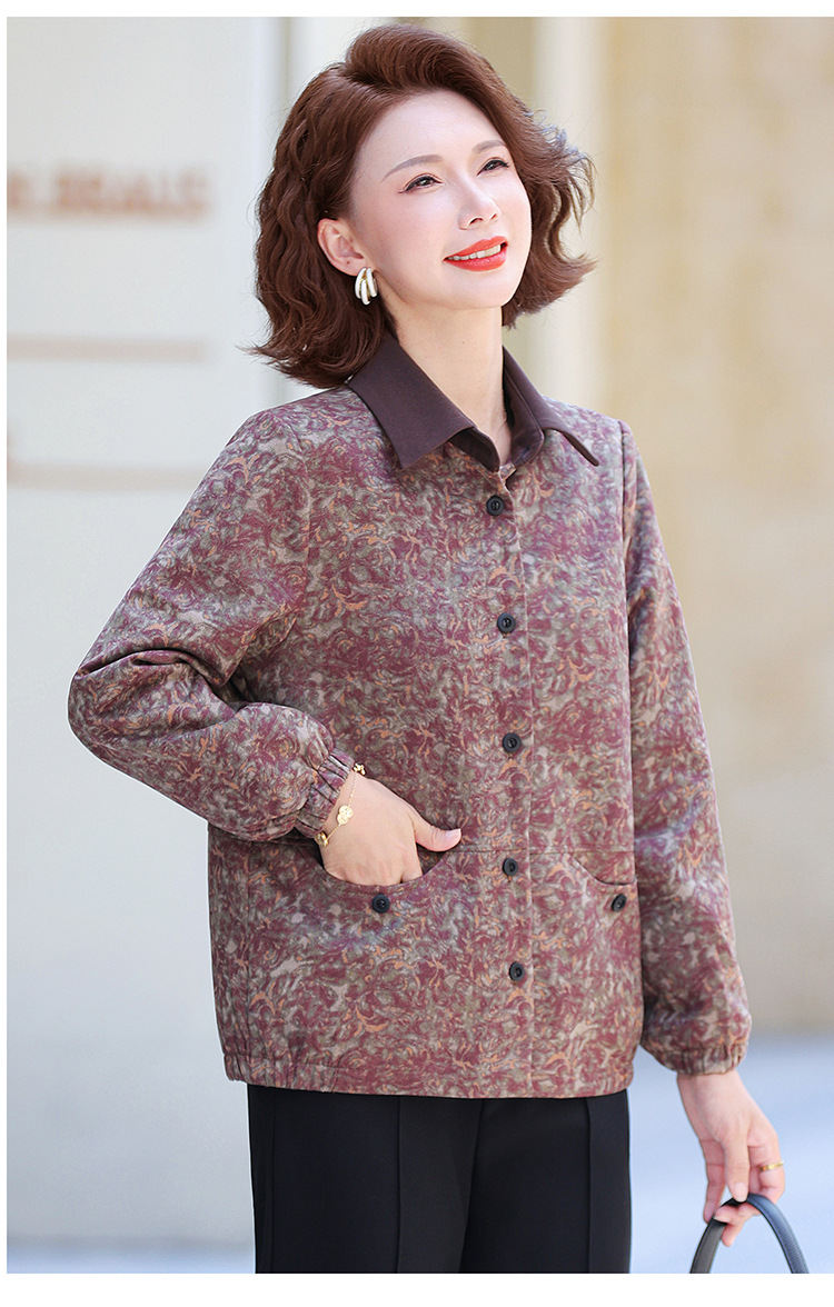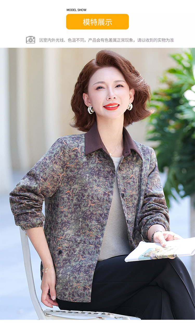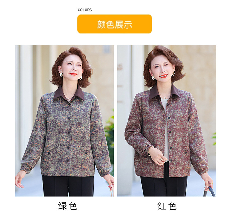 一件代发春秋季新款翻领提花百搭夹克衫中老年妈妈装休闲显瘦外套