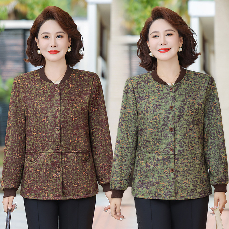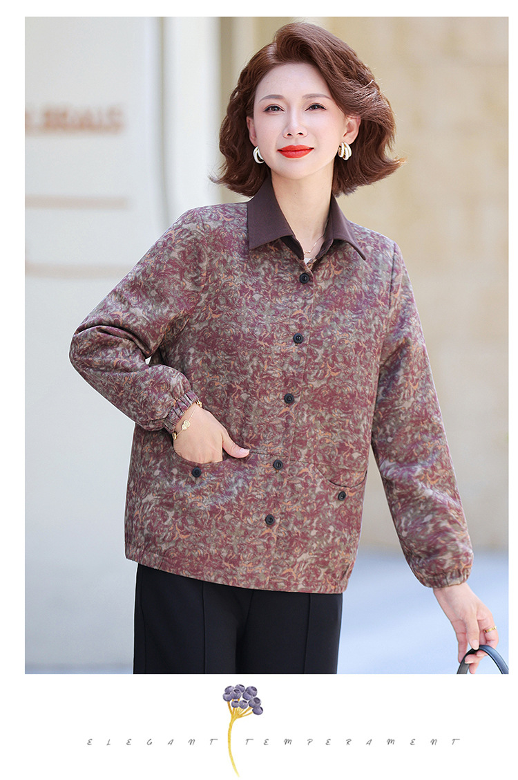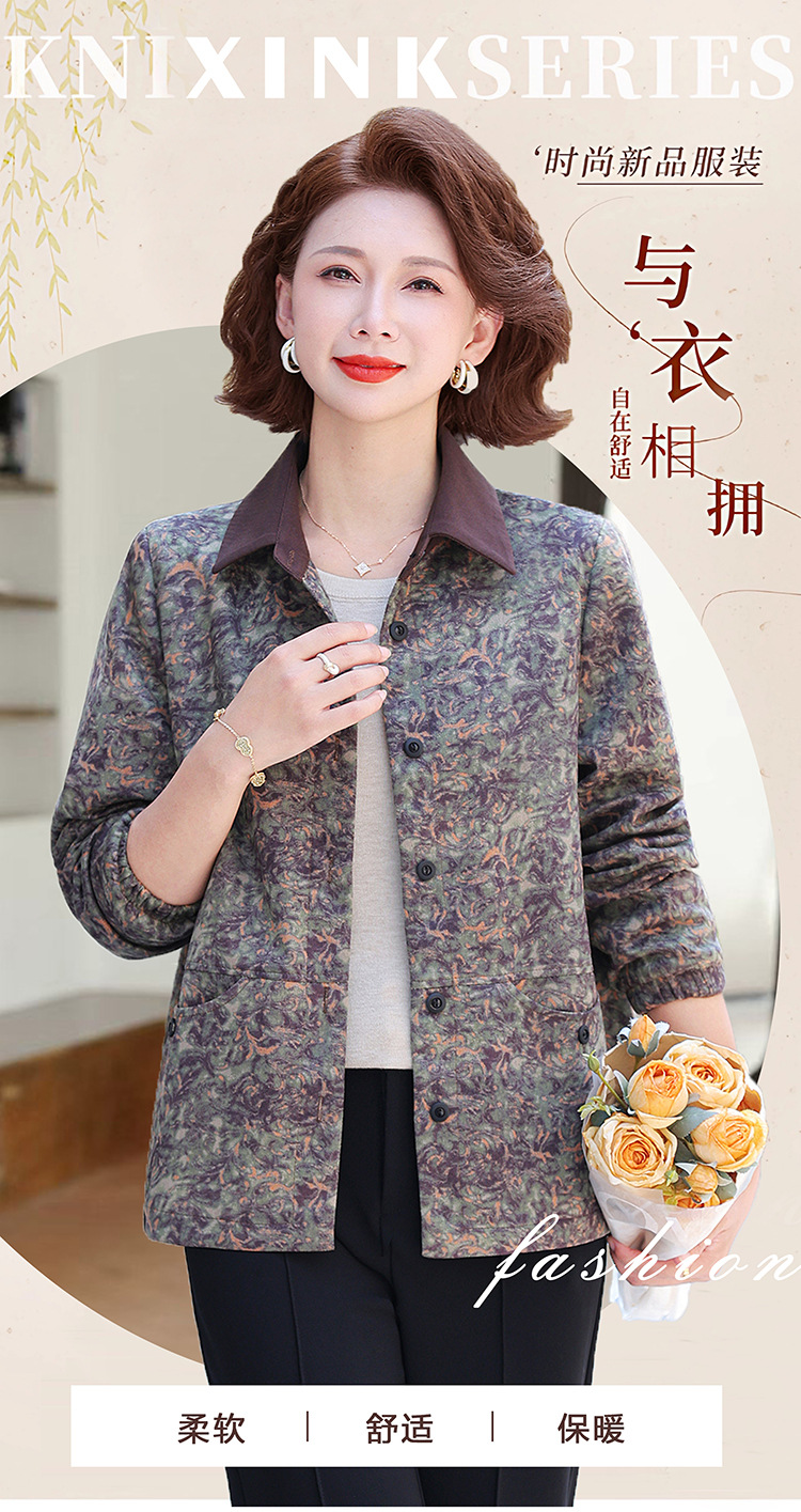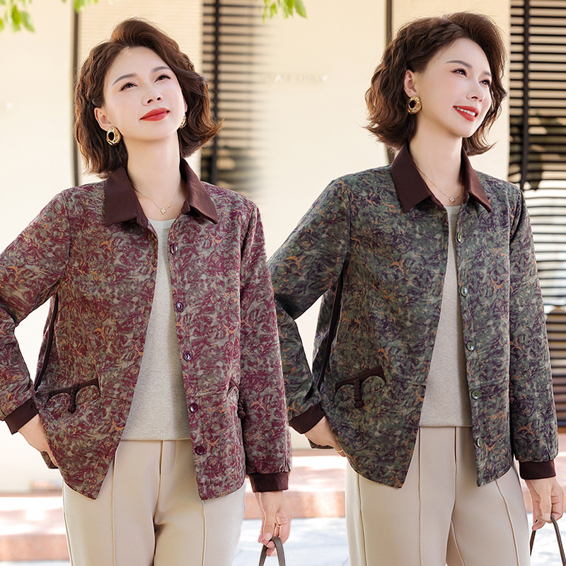 一件代发春秋季新款翻领提花百搭夹克衫中老年妈妈装休闲显瘦外套