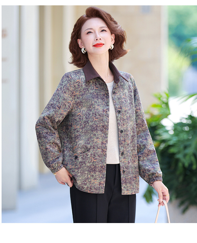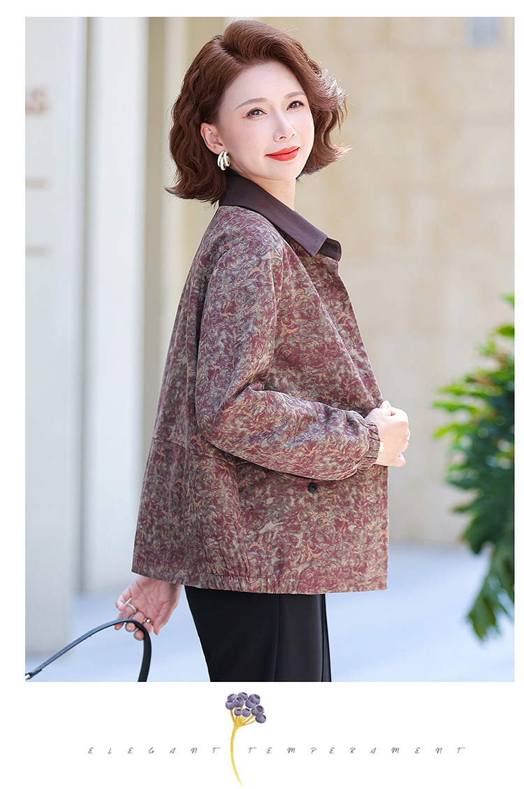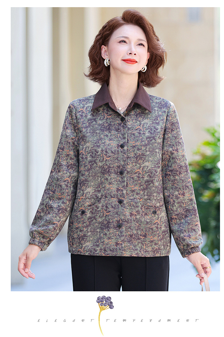 妈妈装印花宽松大码外套女春秋装新款休闲夹克中老年女装百搭上衣