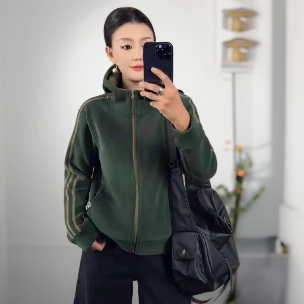 连帽拼接撞色运动卫衣开衫秋冬新款女款时尚保暖宽松休闲百搭外套