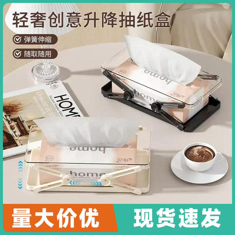 新款可升降纸巾盒弹簧抽纸盒客厅茶几家用可折叠餐巾纸盒收纳盒批