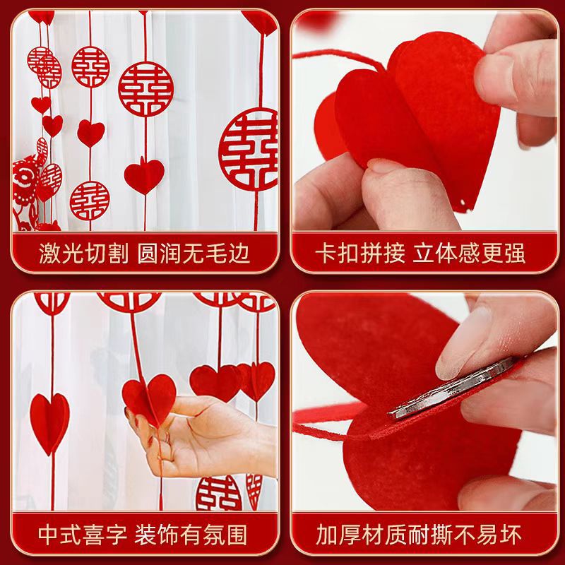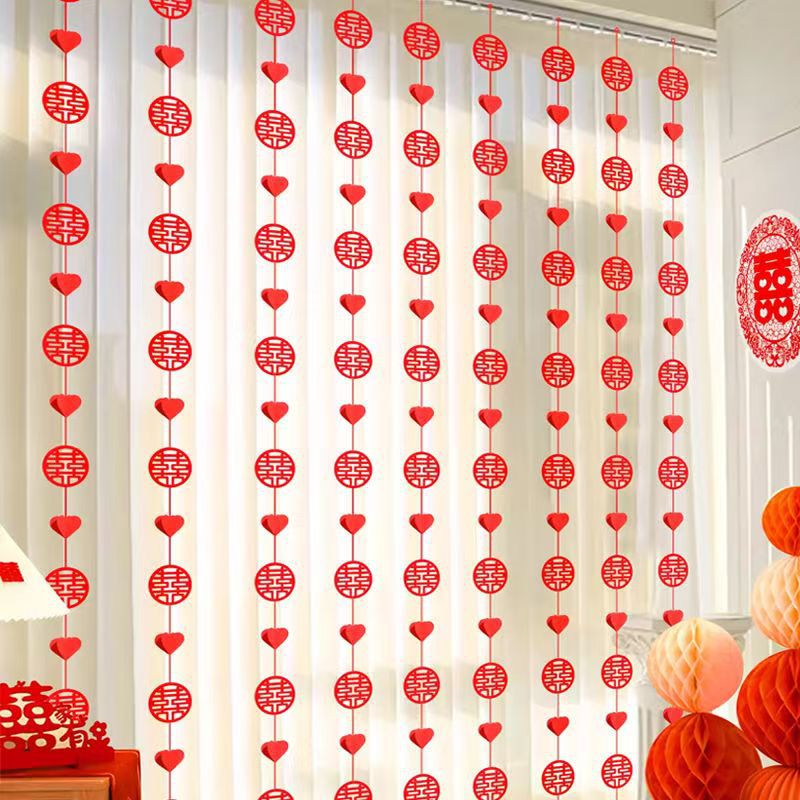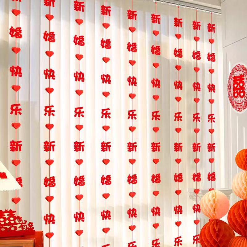 婚房装饰布置结婚挂帘新房拉花挂件窗帘男女方卧室客厅婚礼ins风