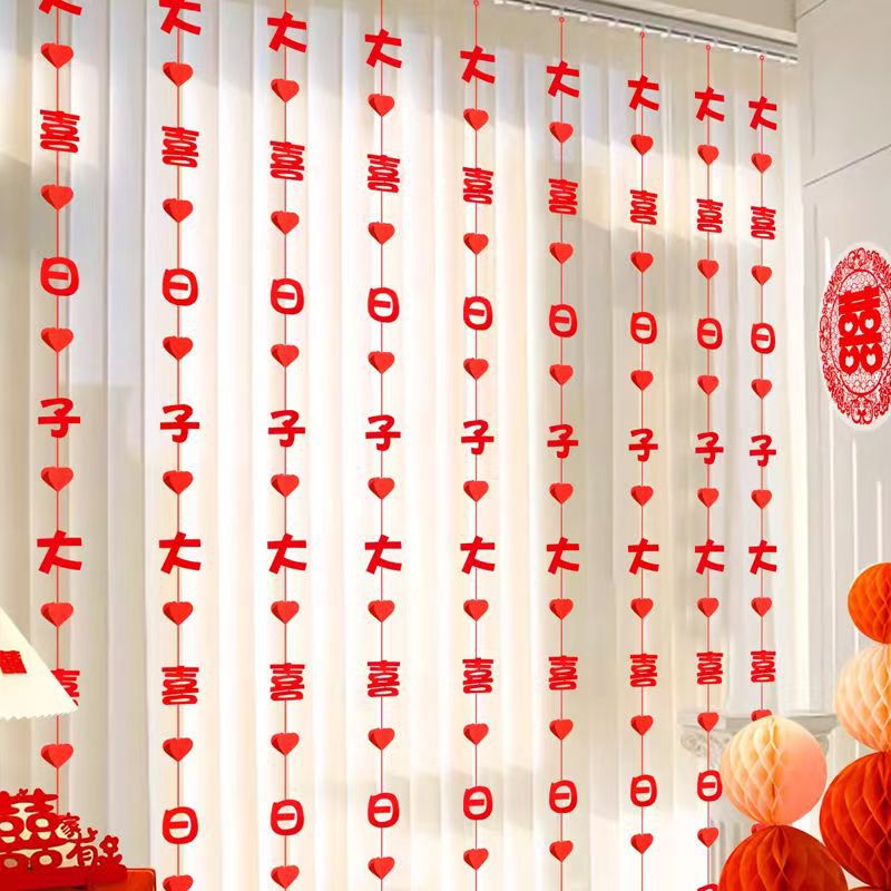 窗帘挂饰结婚男方新房房间喜字拉花装饰女方卧室婚礼婚房布置套装
