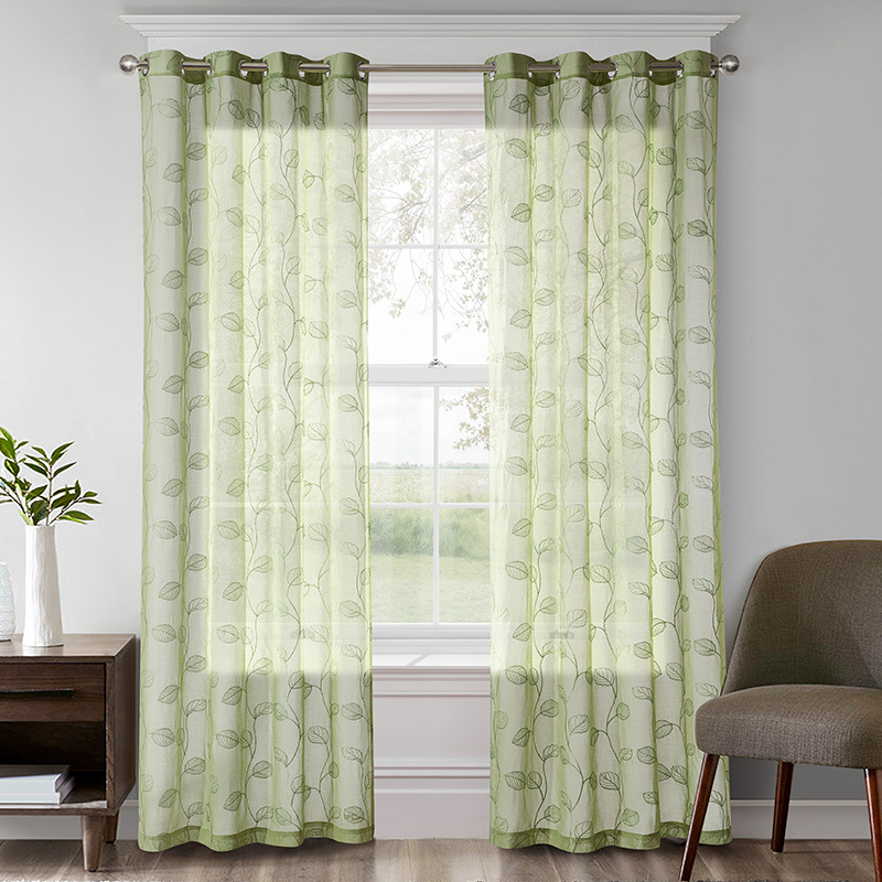 新款跨境外贸窗帘半遮光打孔垂直帘 美式简约多色绣花窗帘纱成品