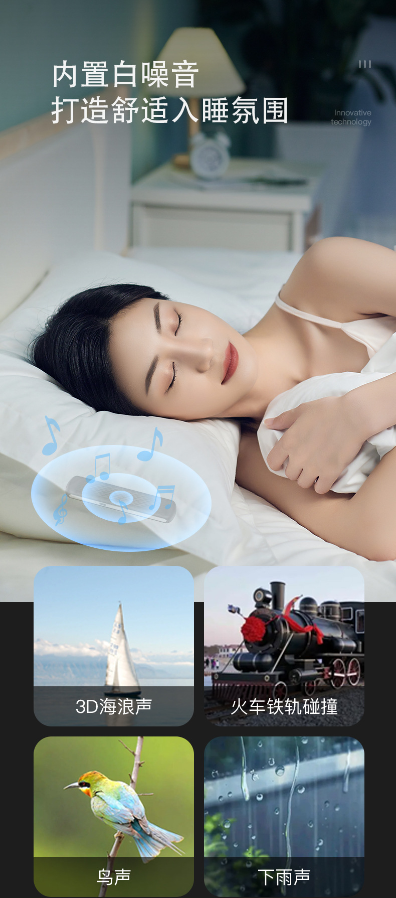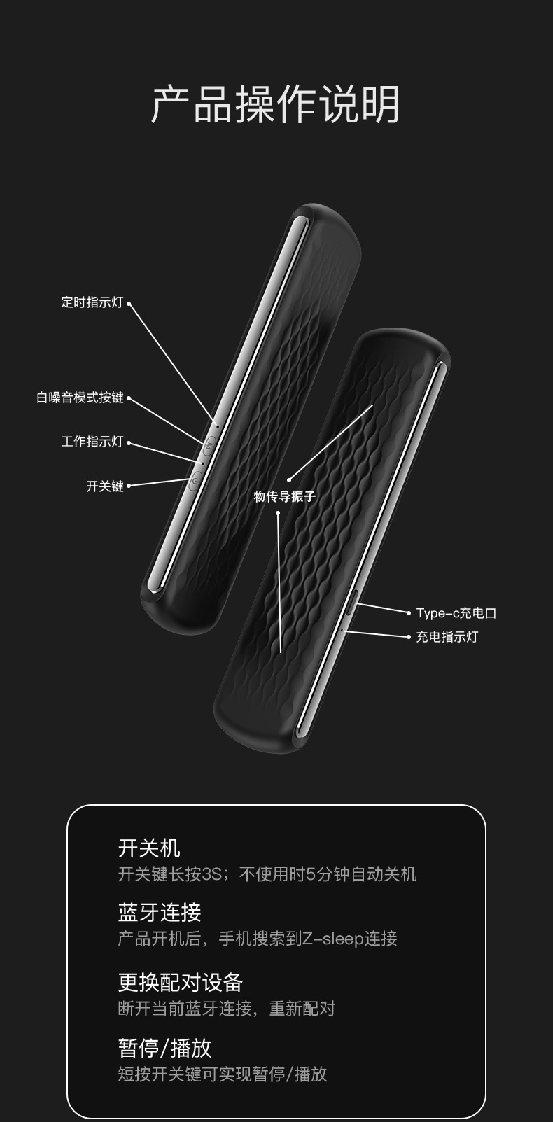 蓝牙睡眠音箱睡眠仪白噪音舒缓放松卧室枕下骨感传导睡觉神器音乐