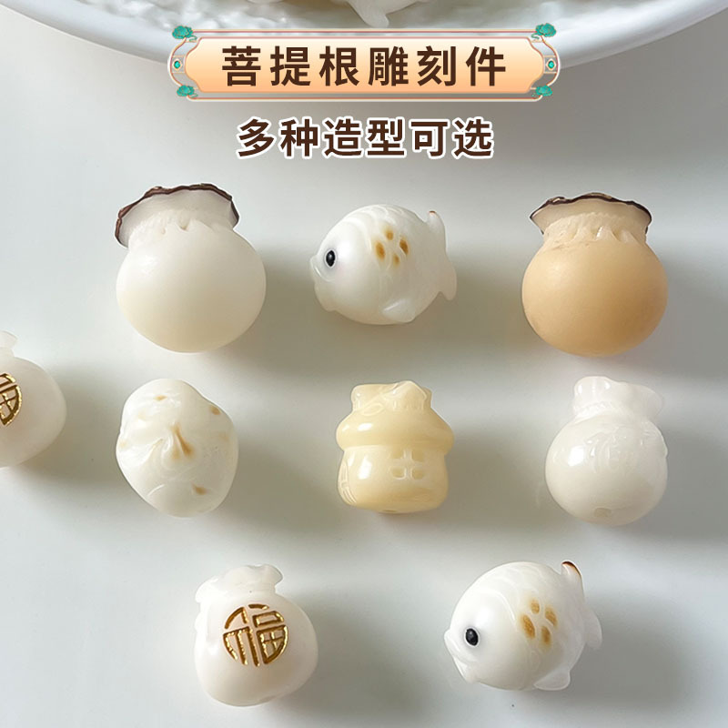 白玉菩提根雕刻件小锦鲤文玩饰品DIY手工配饰配件串珠隔珠手链男