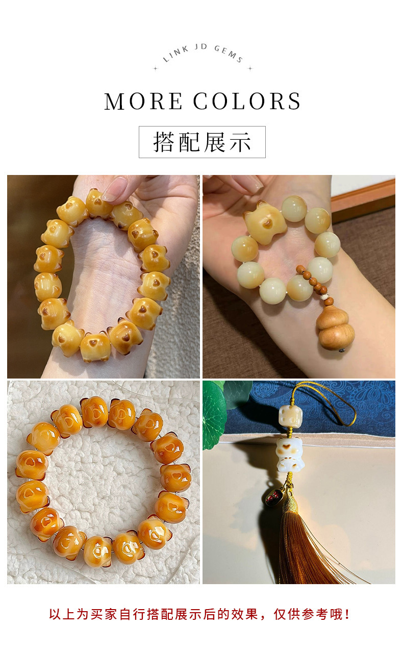 爆款仿蜜蜡俏色小熊配饰手串女diy散珠配件蜜蜡爱心可爱文玩批发