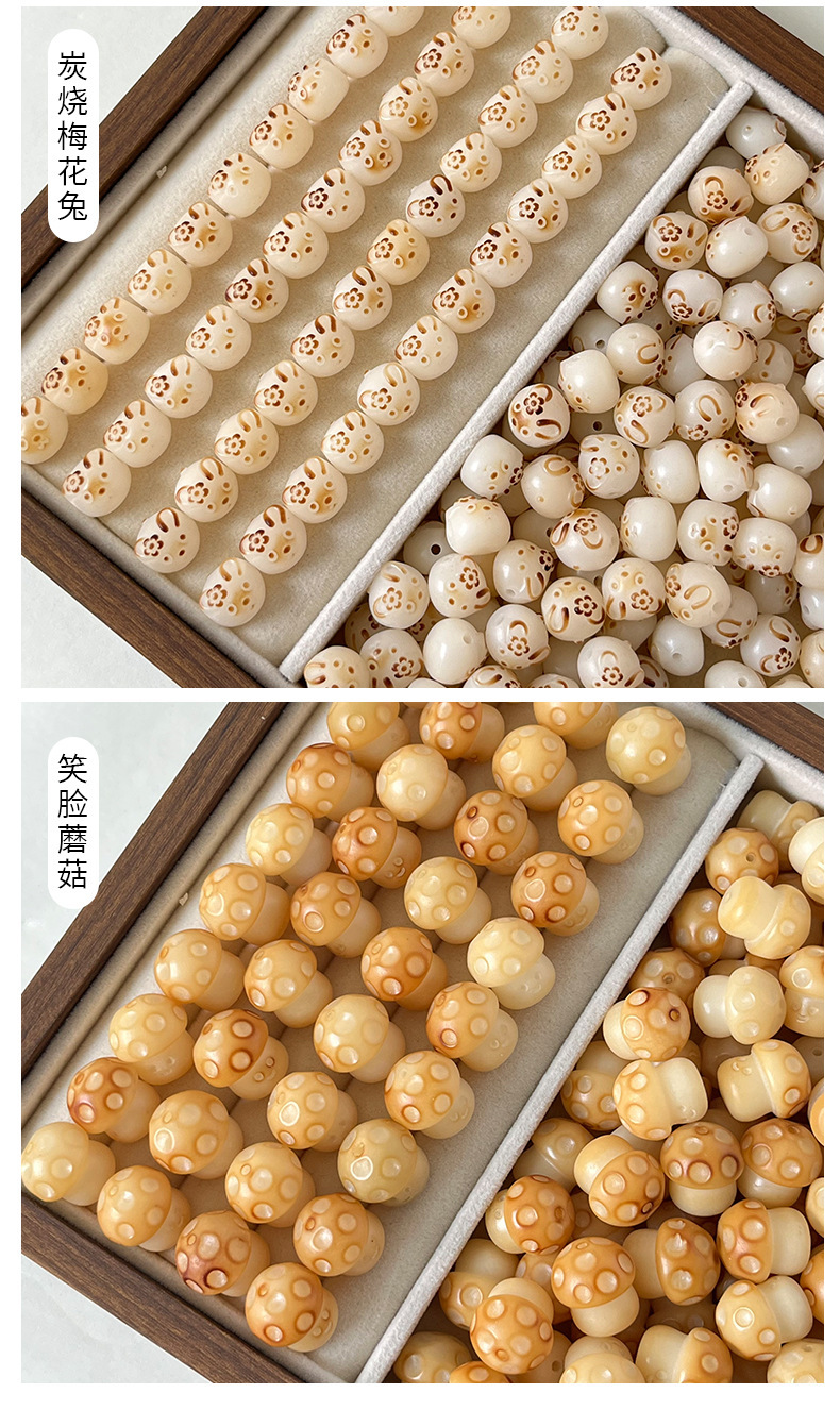 天然菩提根炭烧雕刻件爱心熊散珠配饰炭烧面包姜饼人串珠diy配件