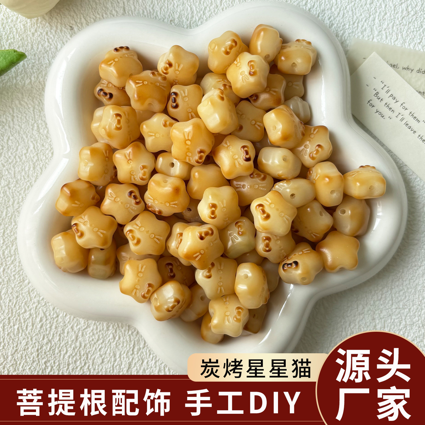 菩提根炭烤星星小猫散珠配件手工diy文玩配饰串珠佛珠念珠手链女