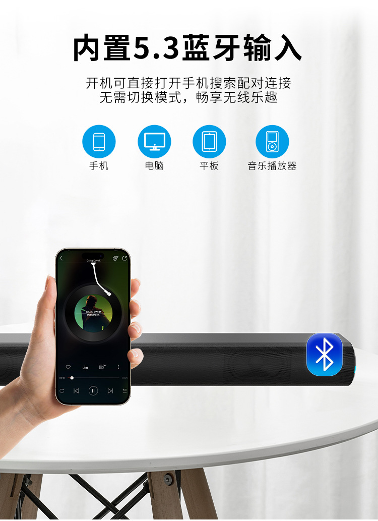 跨境新款电视回音壁声霸条形音响客厅厂家批发大音量2.0蓝牙音箱