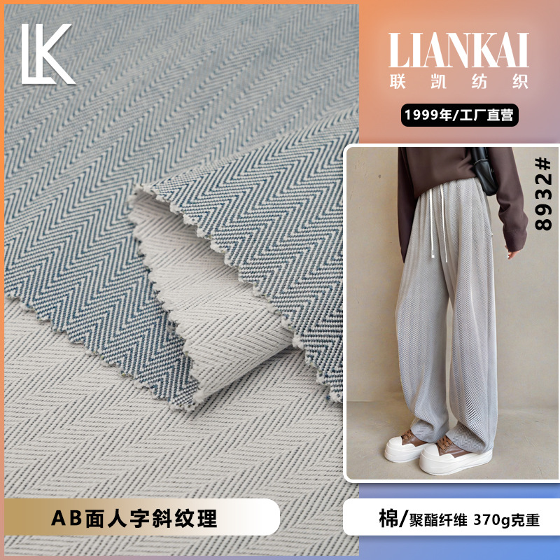 现货370g斜纹棉布料 梭织棉AB双面人字斜纹理时尚休闲阔腿裤面料