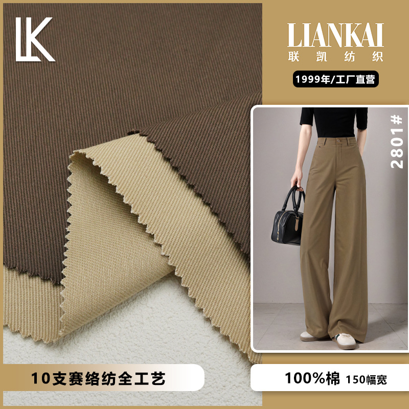 10支赛络纺斜纹棉 250g秋冬全棉纱卡裤子面料 全工艺梭织水洗棉布