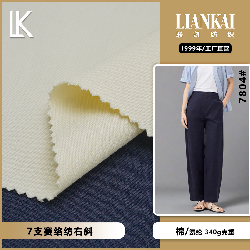 7支赛络纺右斜纹棉布 340g梭织斜纹水洗棉布料 秋冬弹力裤装面料