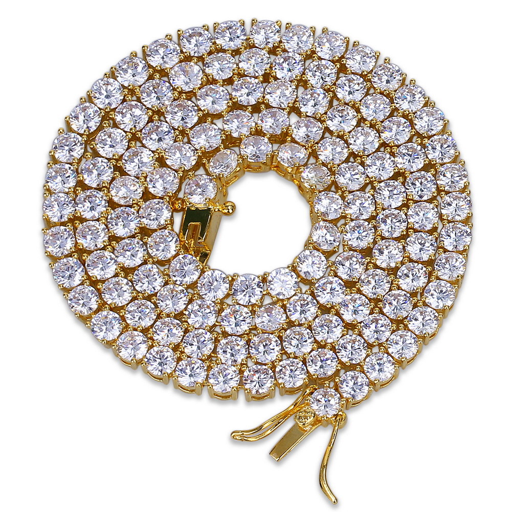 3mm-5mm ヒップホップ シングル列 ジルコニア テニスチェーン ネックレス ブレスレット シンプル 男女兼用 ジュエリー おしゃれ 上品