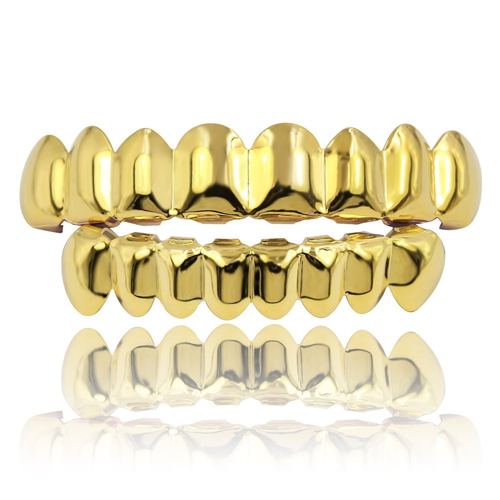 欧米で人気のHIPHOPヒップホップ風ゴールド歯飾り 上歯8本 下歯8本 歯飾り クロスボーダー 光沢歯飾り 卸売