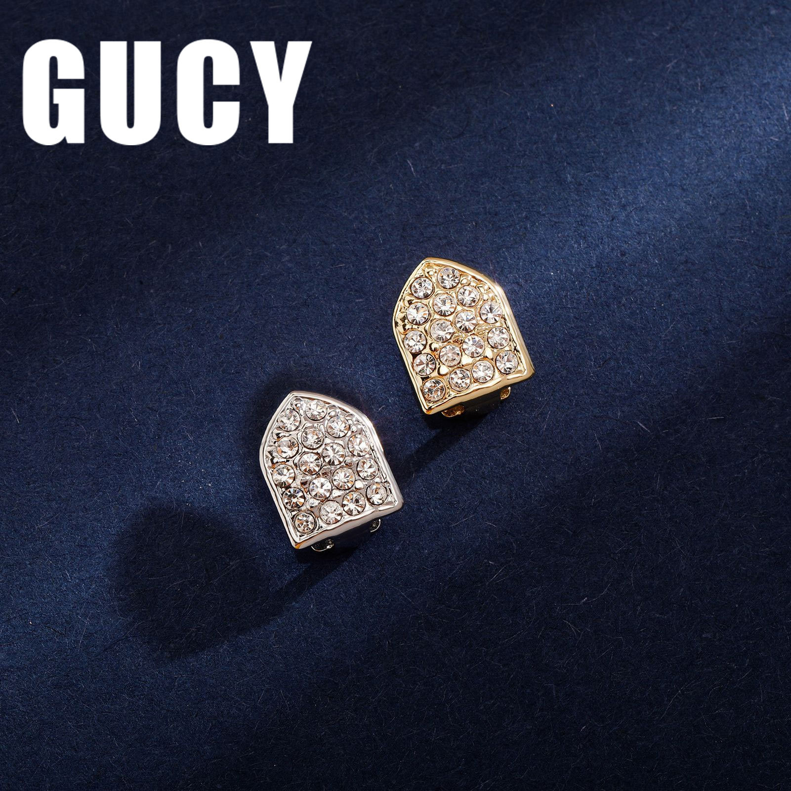 TEMU 銅マイクロ舗装クロスジルコンブレースダイヤモンドがいっぱいスパークリング個性グリルズハロウィンヒップホップシングルゴールド歯