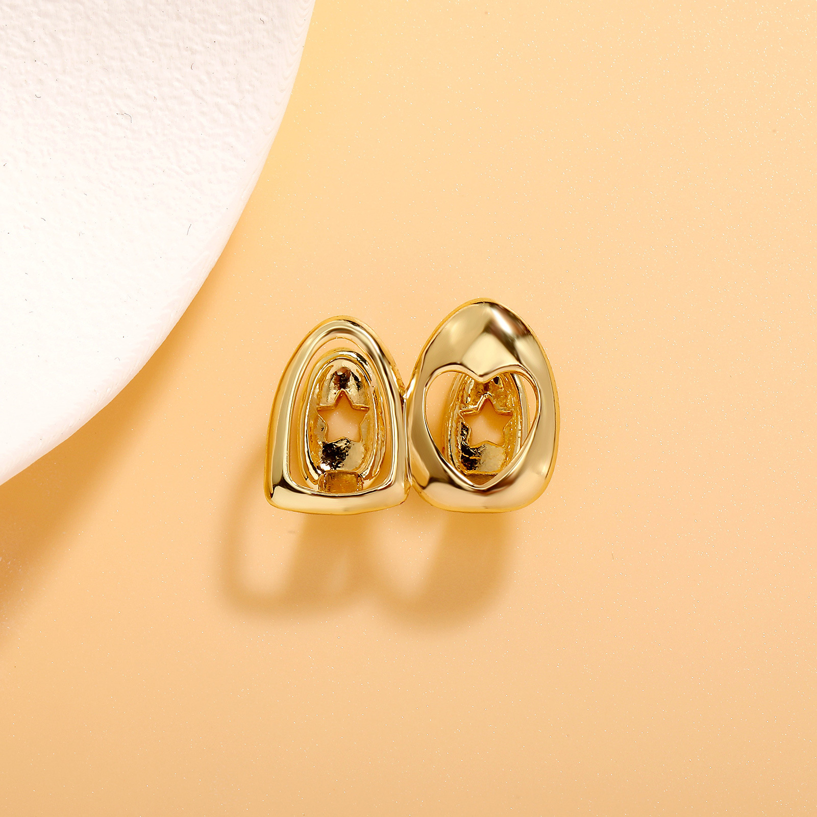 欧美夸张镂空双颗爱心镀金金牙套潮人穿搭牙齿 hiphop grillz批发