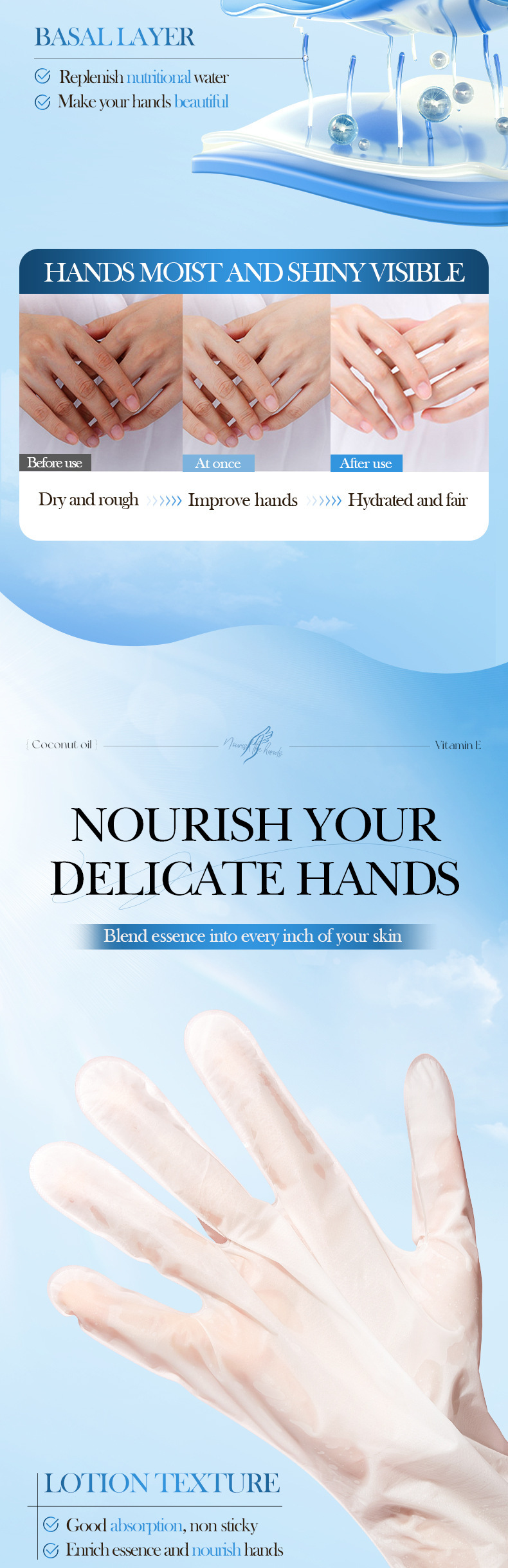 手膜足膜系列 白松露凡士林丝滑莹嫩手膜 补水去死皮保湿改善中文