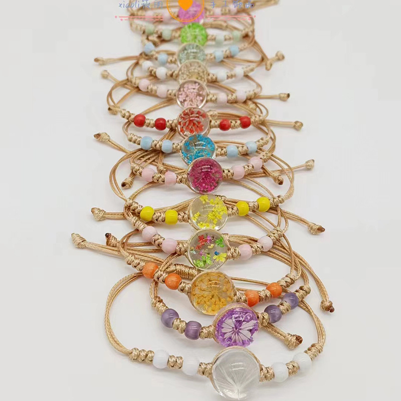 露店卸売り手編み女性手鎖ひもカラー陶磁器珠時間宝石天然真花ブレスレット満天星