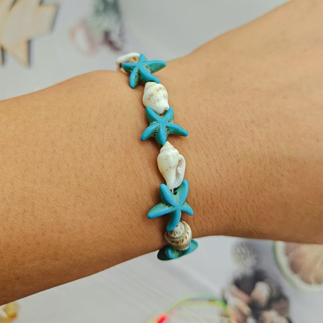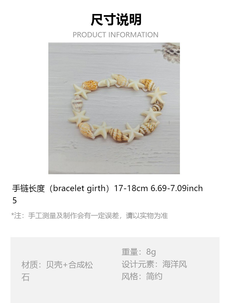 欧美跨境热卖海洋风沙滩新款蓝松石海星天然贝壳海螺弹力情侣手链