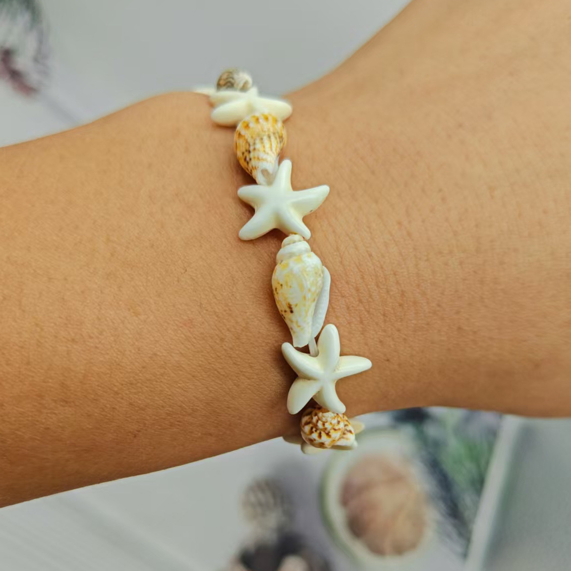 クロスボーダーボヘミアンシェルヒトデ手織りブレスレットホリデースタイル小さな新鮮なブレスレットクリエイティブスイートブレスレット