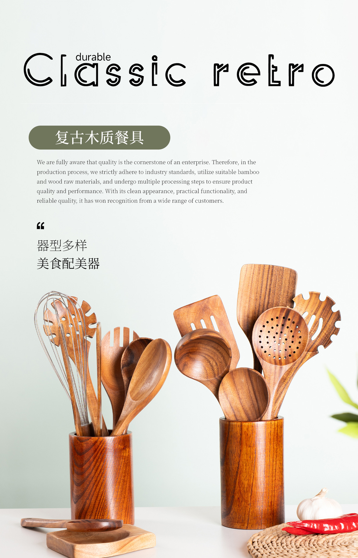 用途 家用木铲沙拉叉柚木烹饪锅铲沙拉勺套装木制料理铲厨具批发