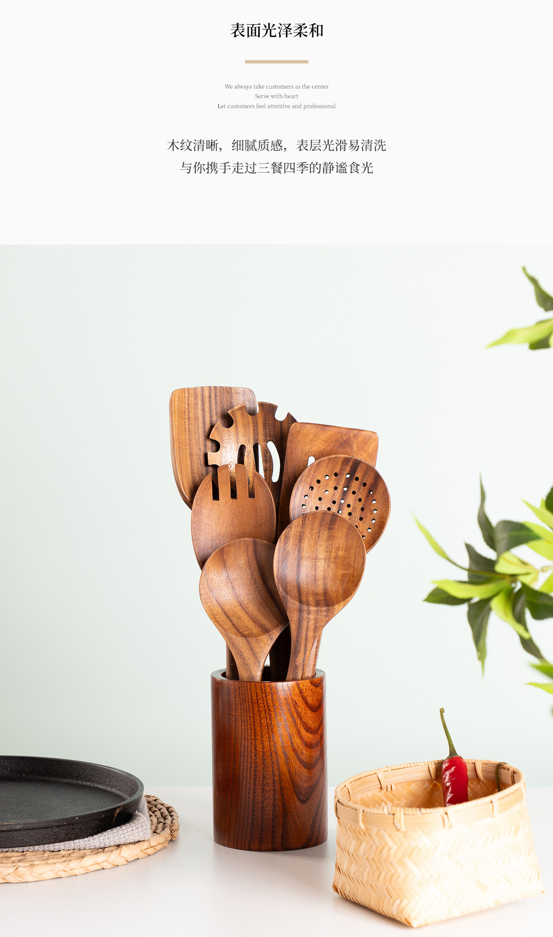 相思木厨具十件套长柄耐高温烹饪锅铲漏勺家用木汤勺饭勺捞面勺