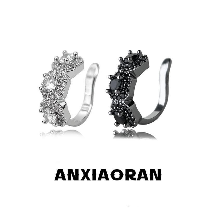 磁気ピアスなしのイヤークリップ、トレンディな男性の個性、ブラックファッション、インターネットセレブスタイルのシングルイヤリング、シンプルな黒と白のジルコンイヤリング