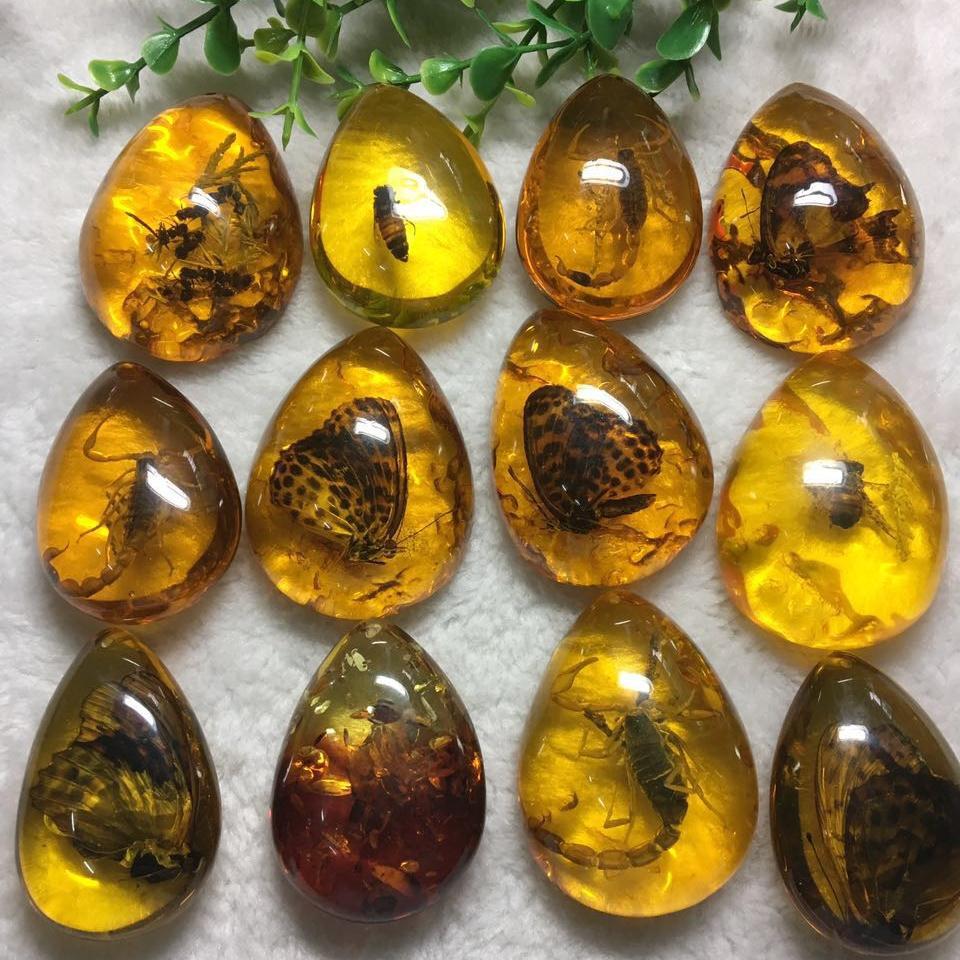 厳選された琥珀の本物の昆虫標本ペンダント、虫入り琥珀水滴、サソリ、蝶、蜂、花の琥珀ペンダント
