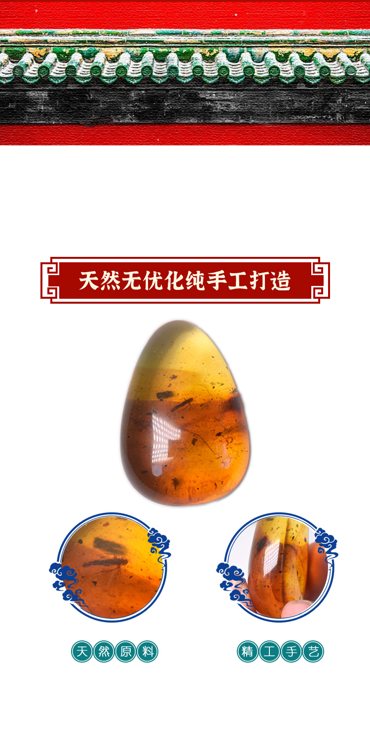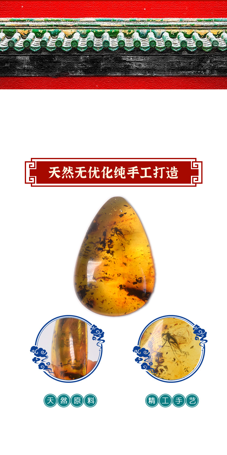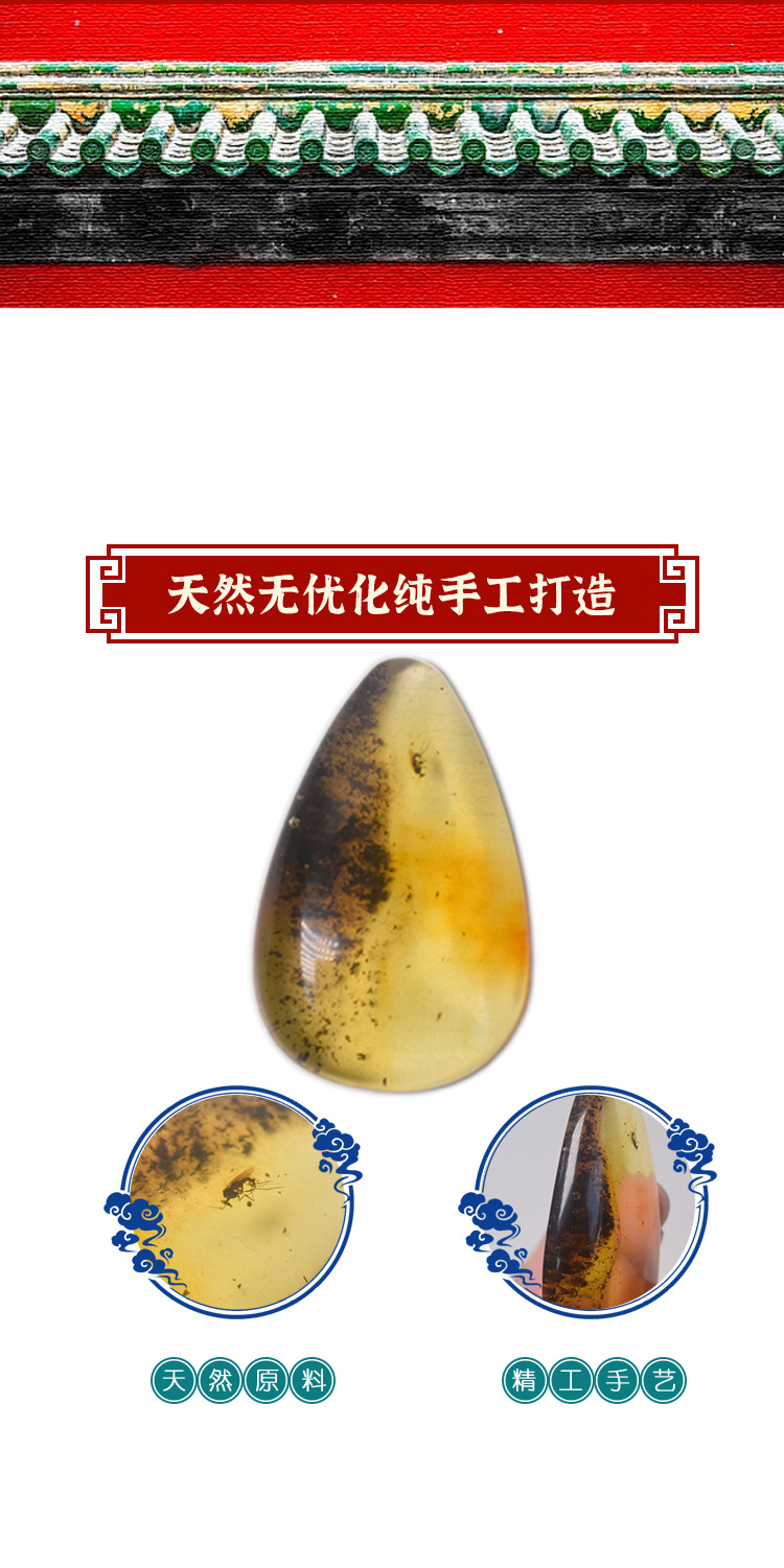 商品名称 波罗的海原矿天然真货净水虫珀水滴吊坠项链含虫挂件饰品爆款热卖