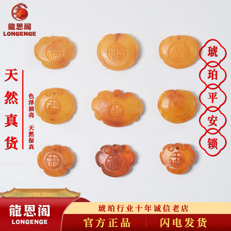天然真货琥珀蜜蜡老蜜鸡油黄如意锁平安扣项链手链吊坠挂件批发