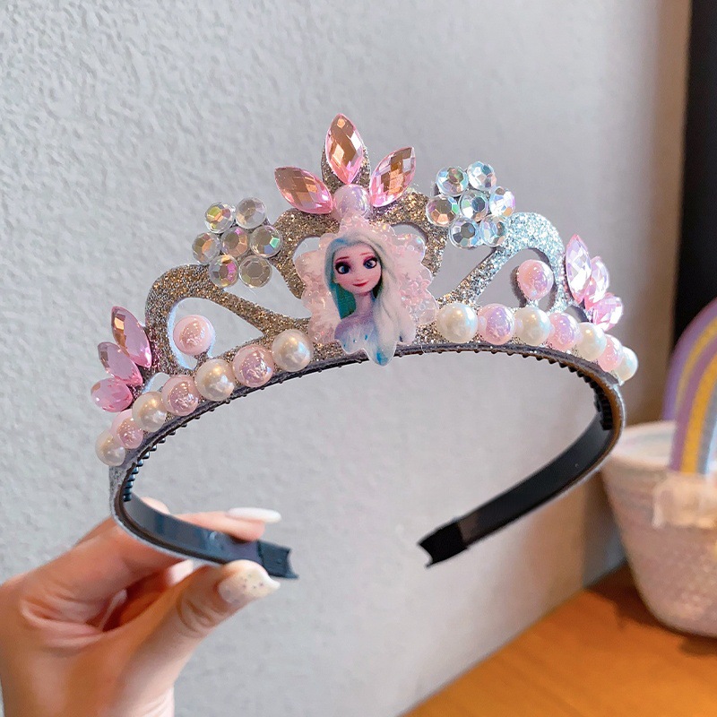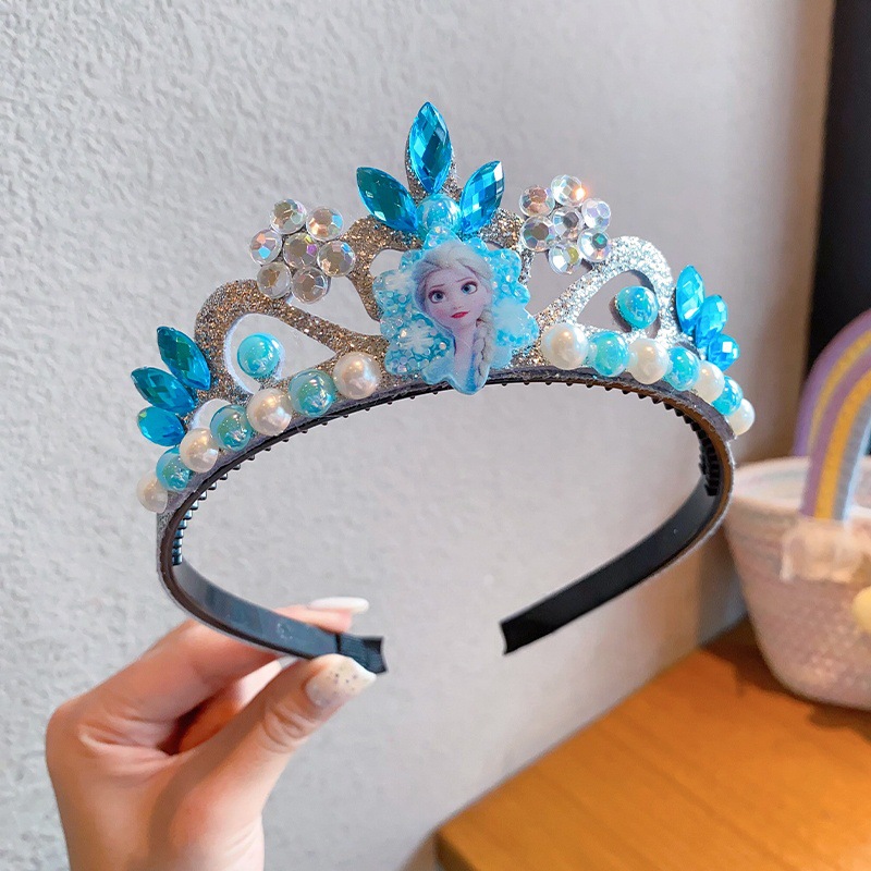 艾莎公主皇冠儿童发箍女童冰雪奇缘蓝色珍珠头箍表演装扮拍摄道具