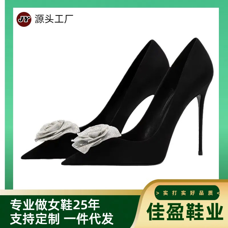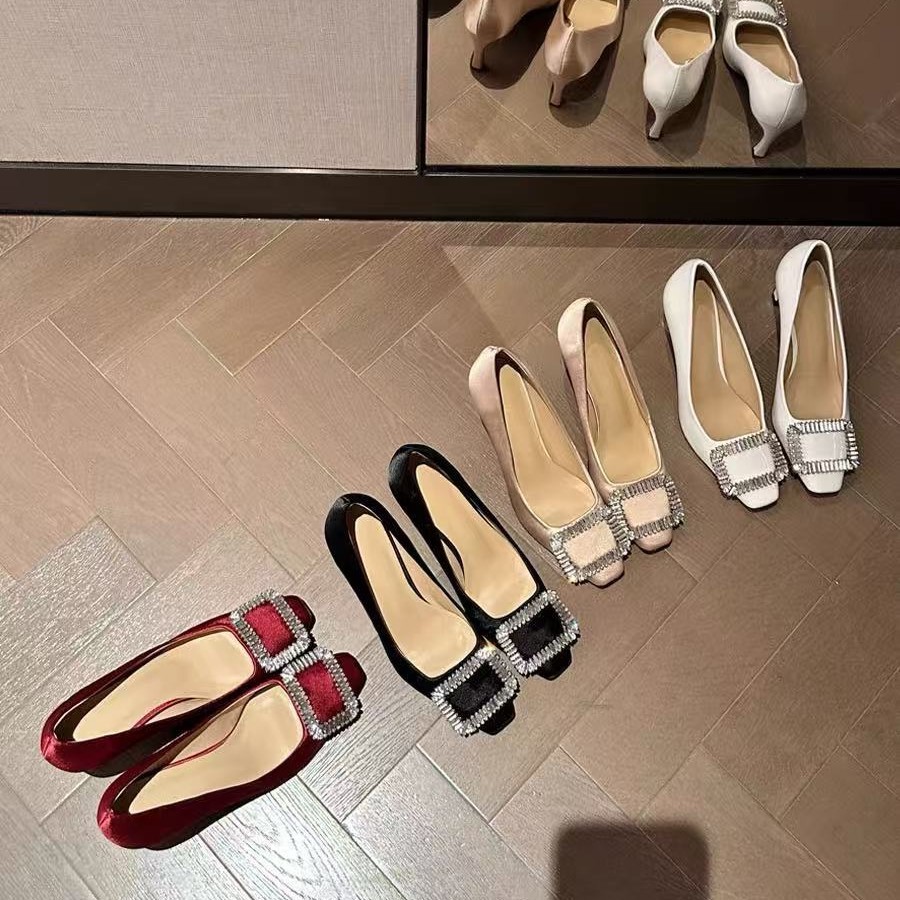 【在庫あり】クラシックな早春の新作RVシルクサテンラインストーンシングルシューズ、レディースウェディングシューズ、浅口ハイヒール、スクエアトゥハイヒール