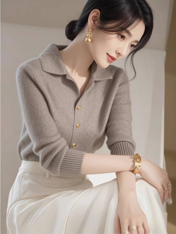 [シープカシミア] カシミアカーディガン レディース 新作 ルーズラペルセーター ウールセーター ショートコート 厚手 秋冬