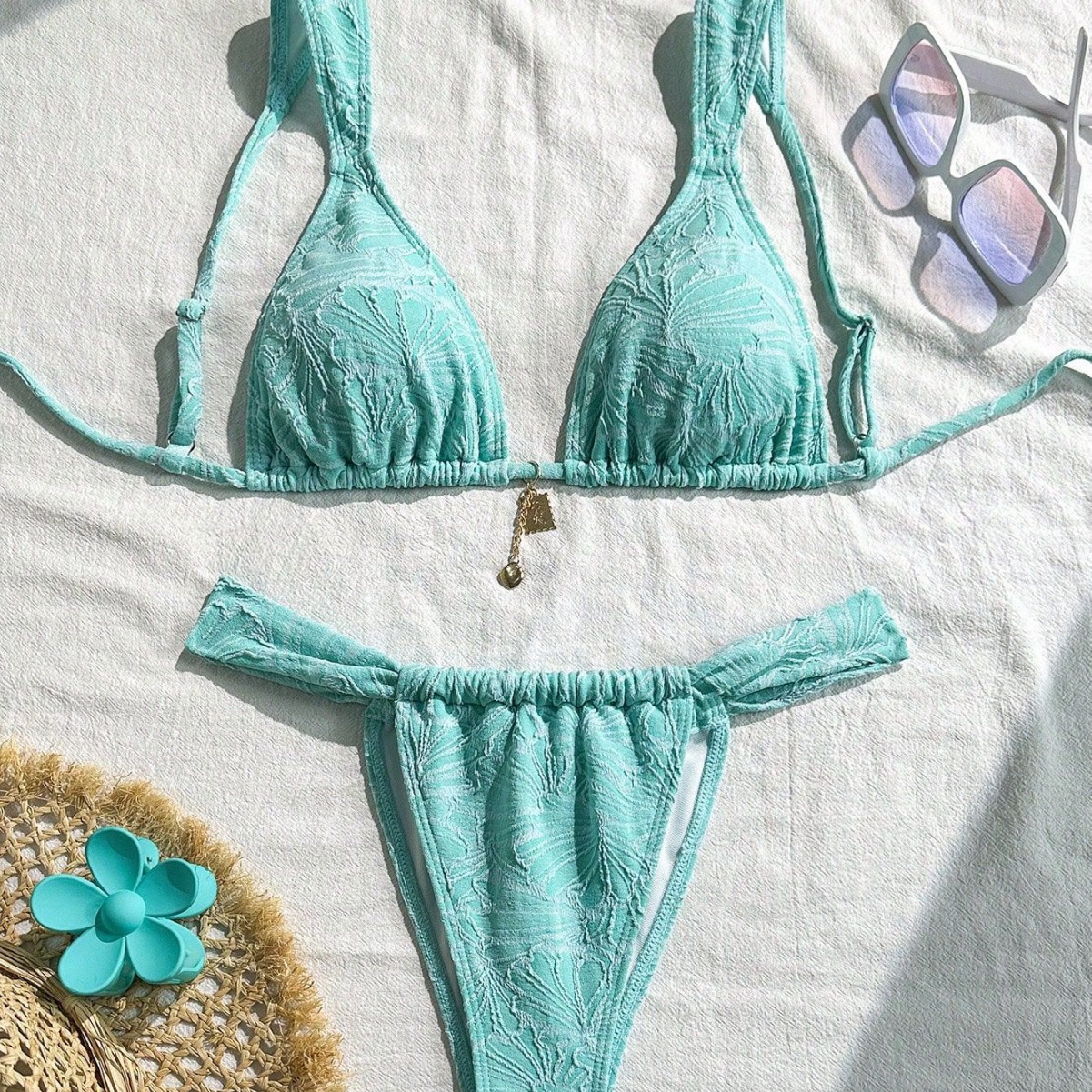 新款欧美外贸批发金属饰品分体比基尼泳衣女套装特种面料工厂直销