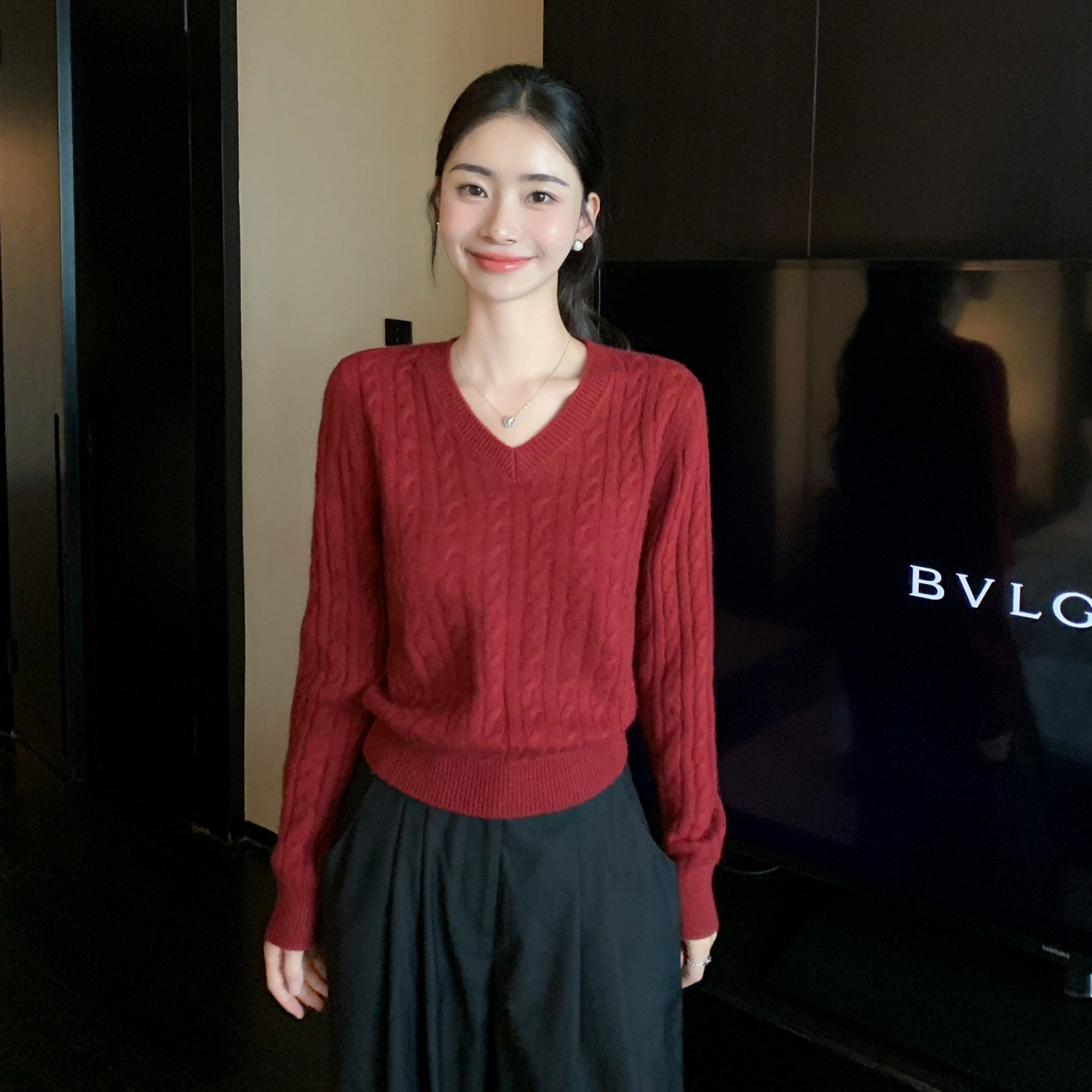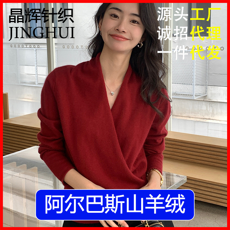 クロスVネックカシミヤセーター レディース 新年ファッション 優しいセーター プルオーバー ゆったりニット ショート丈 秋冬服
