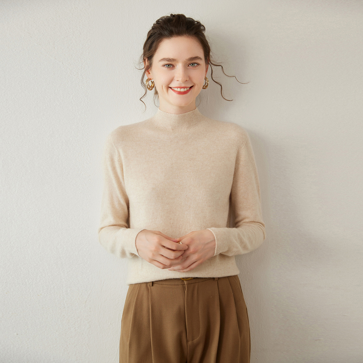 丸首の純ウールのシャツはシンプルで高級感があります。
