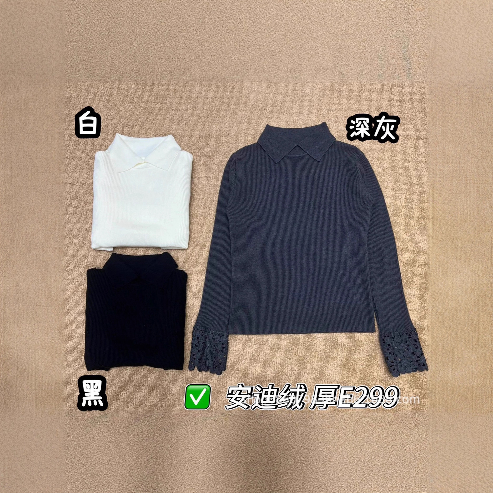 钩花安迪绒别致娃娃领手工软诺诺坑条打底衫新款毛衣女v领毛衣女