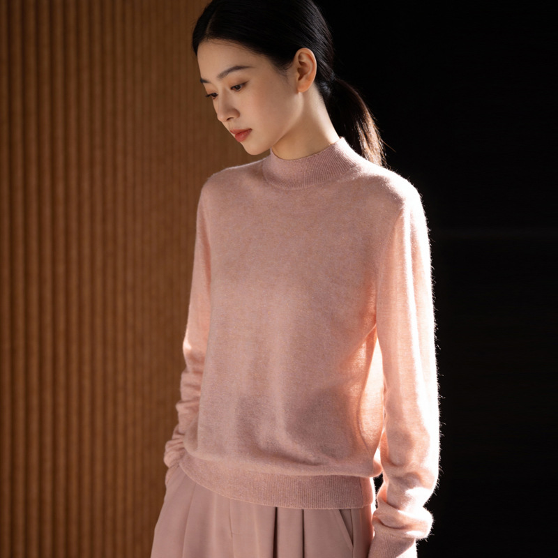 ハーフタートルネックカシミヤセーター レディース 2025年新年新作 秋冬 プルオーバー インナー シームレスワンラインニットセーター